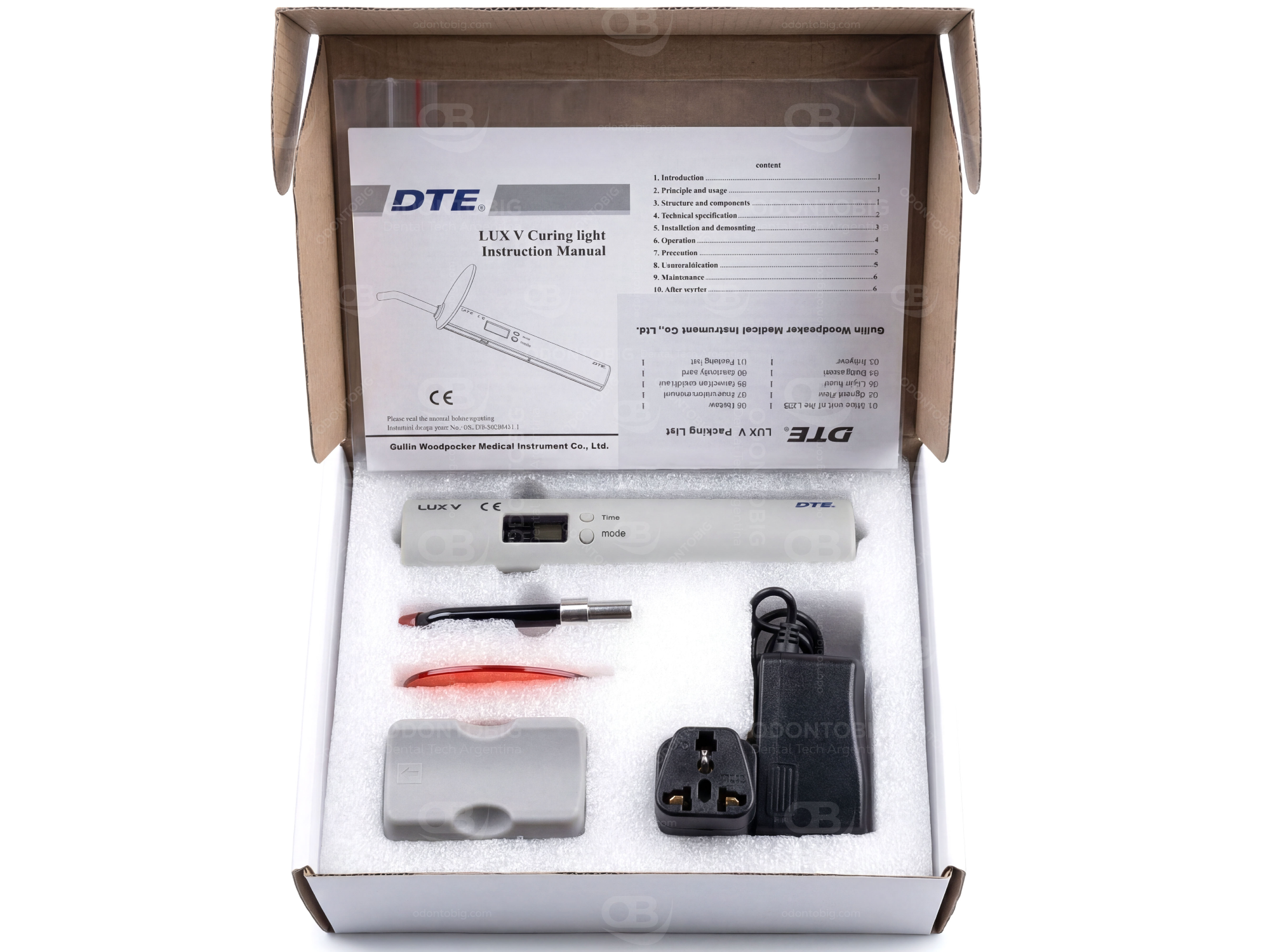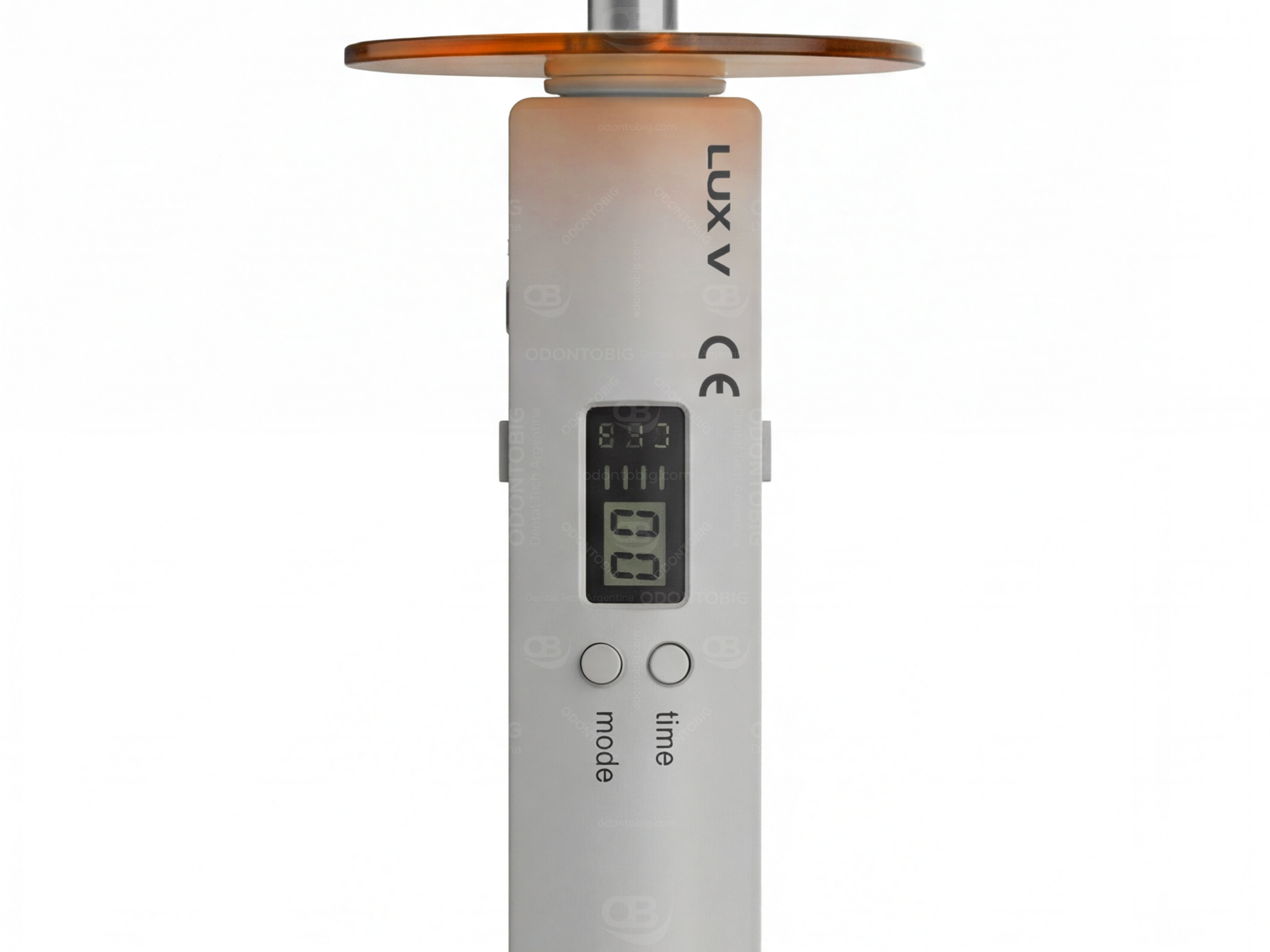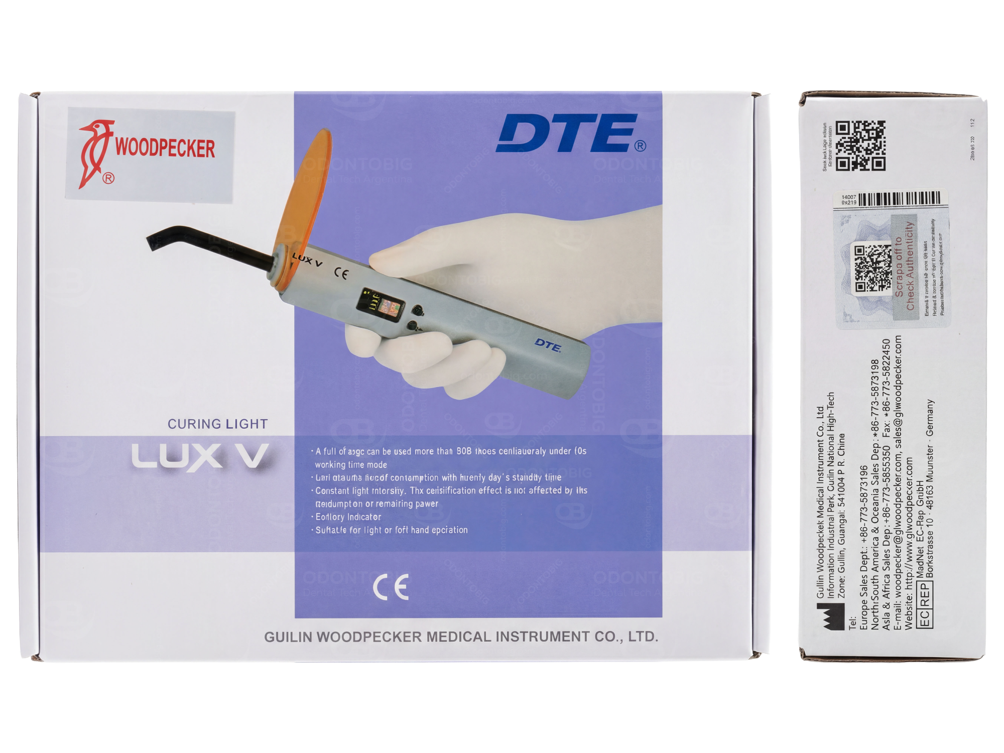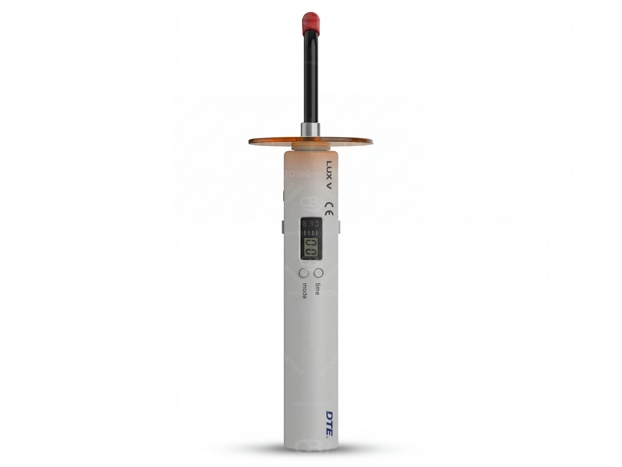 La Lux V de DTE Woodpecker destaca por su amplio espectro (420–480 nm) que permite polimerizar todo tipo de compuestos dentales con rapidez y precisión.