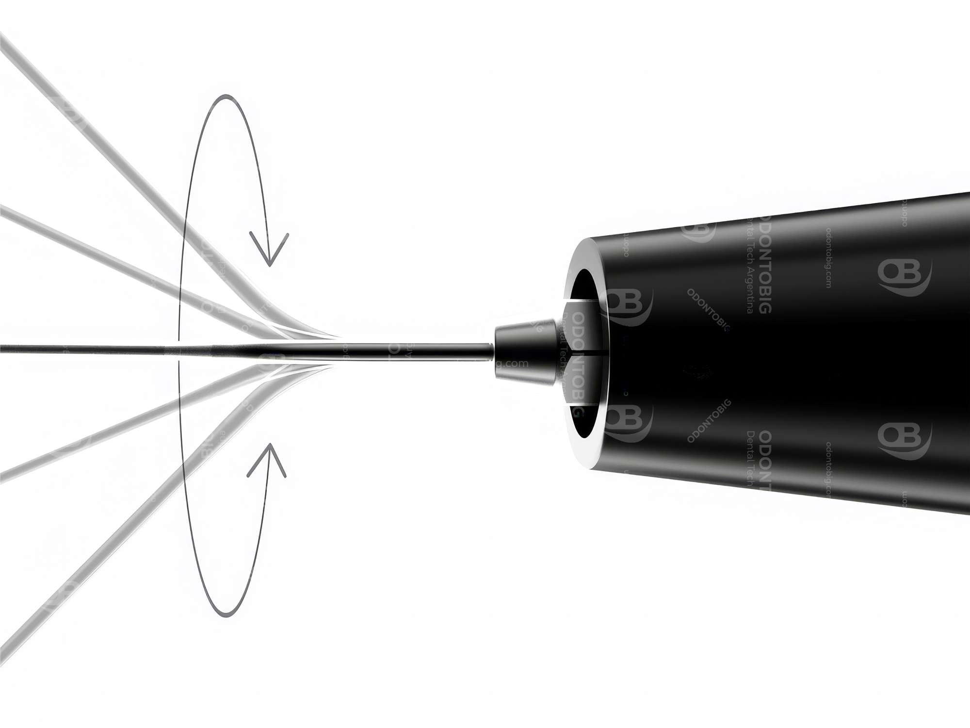 La aguja rotatable 360° permite adaptar el ángulo de trabajo según la situación clínica, mejorando el control de acceso y la ergonomía durante la aplicación.