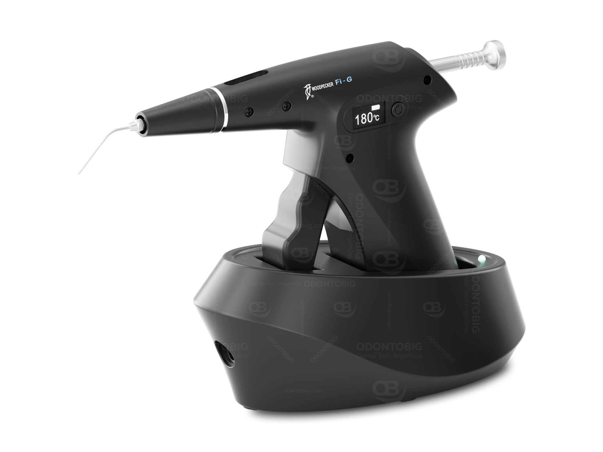 La Pistola de Obturación Fi-G de Woodpecker es un sistema inalámbrico de inyección de gutapercha caliente, diseñado para la etapa de relleno del conducto radicular en procedimientos endodónticos.