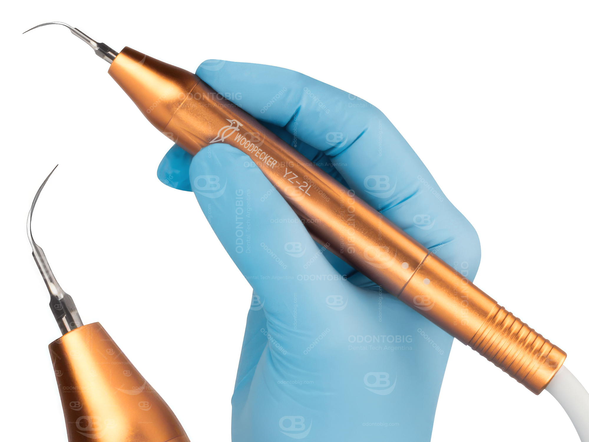 La punta de aleación de titanio suma otro diferencial importante, ya que su dureza es inferior a la del esmalte y cemento dental, ayudando a trabajar con seguridad y minimizando el riesgo de daño sobre los tejidos duros. Esta configuración lo vuelve especialmente interesante para tratamientos periodontales y mantenimiento de implantes.