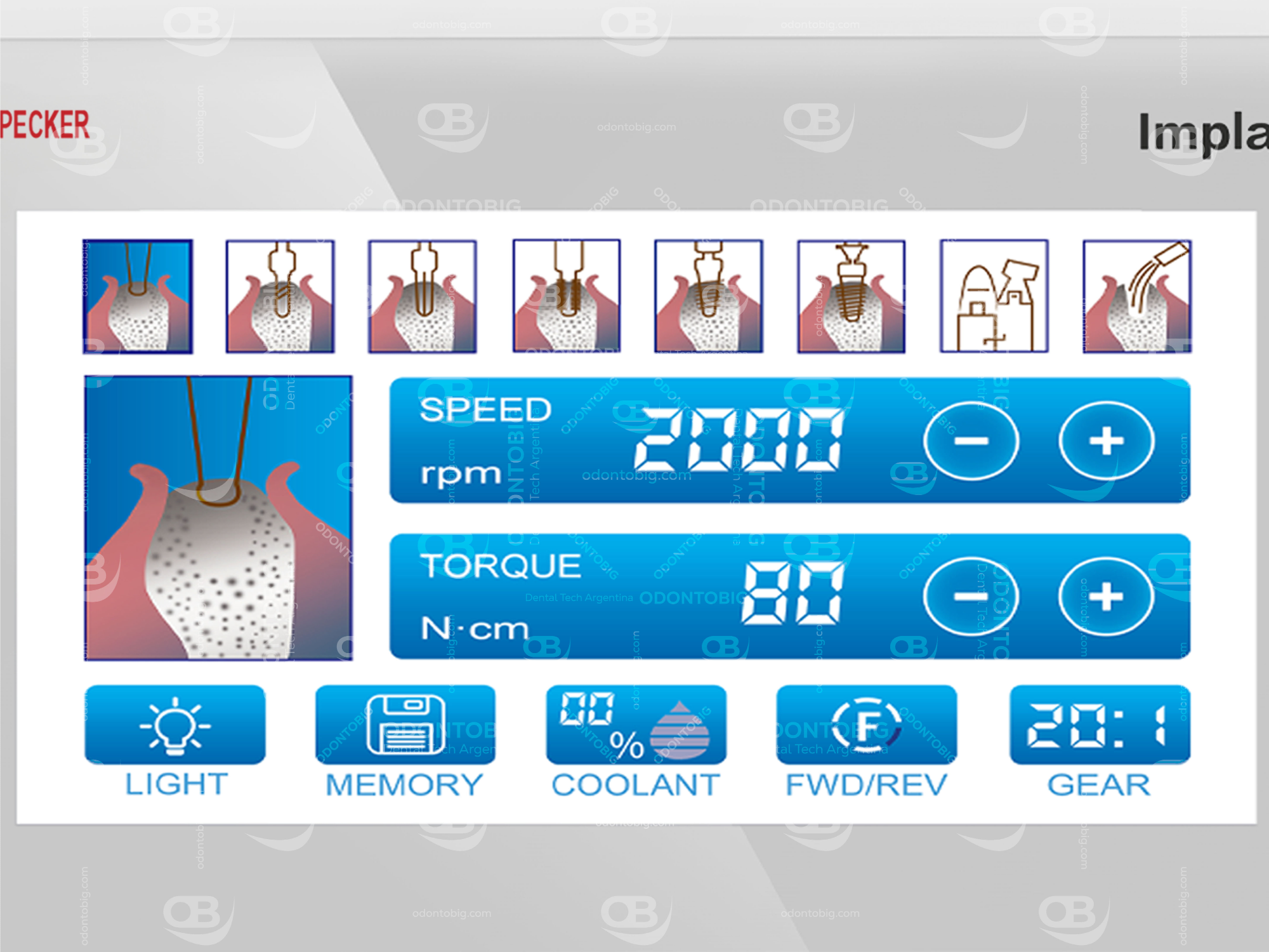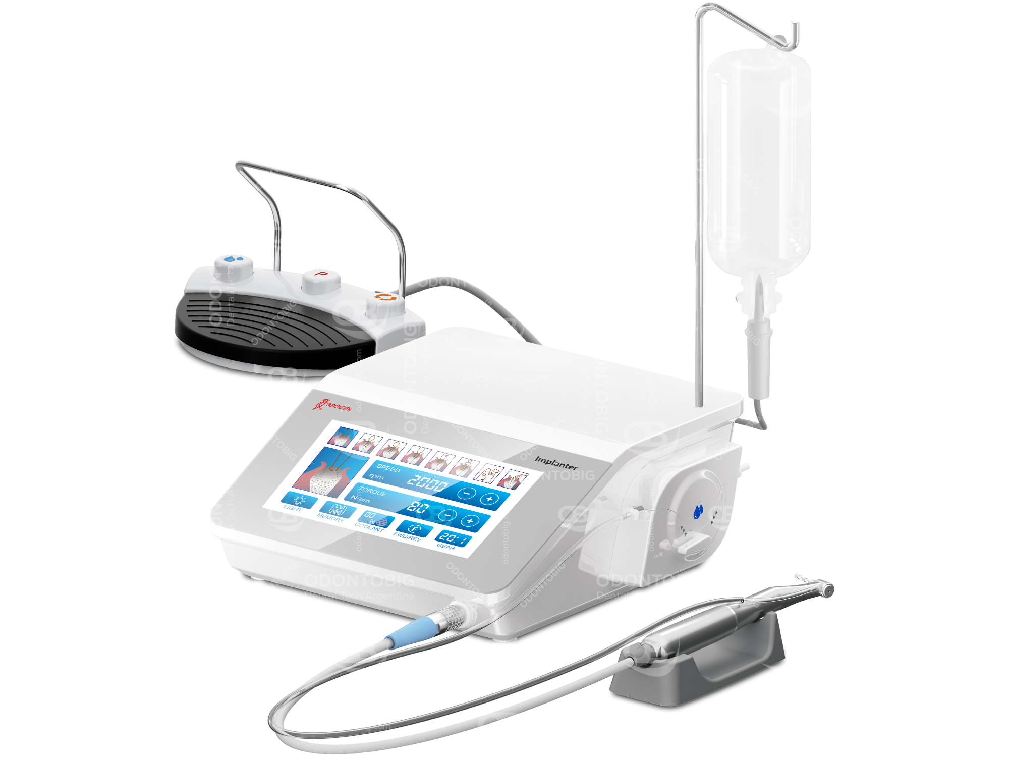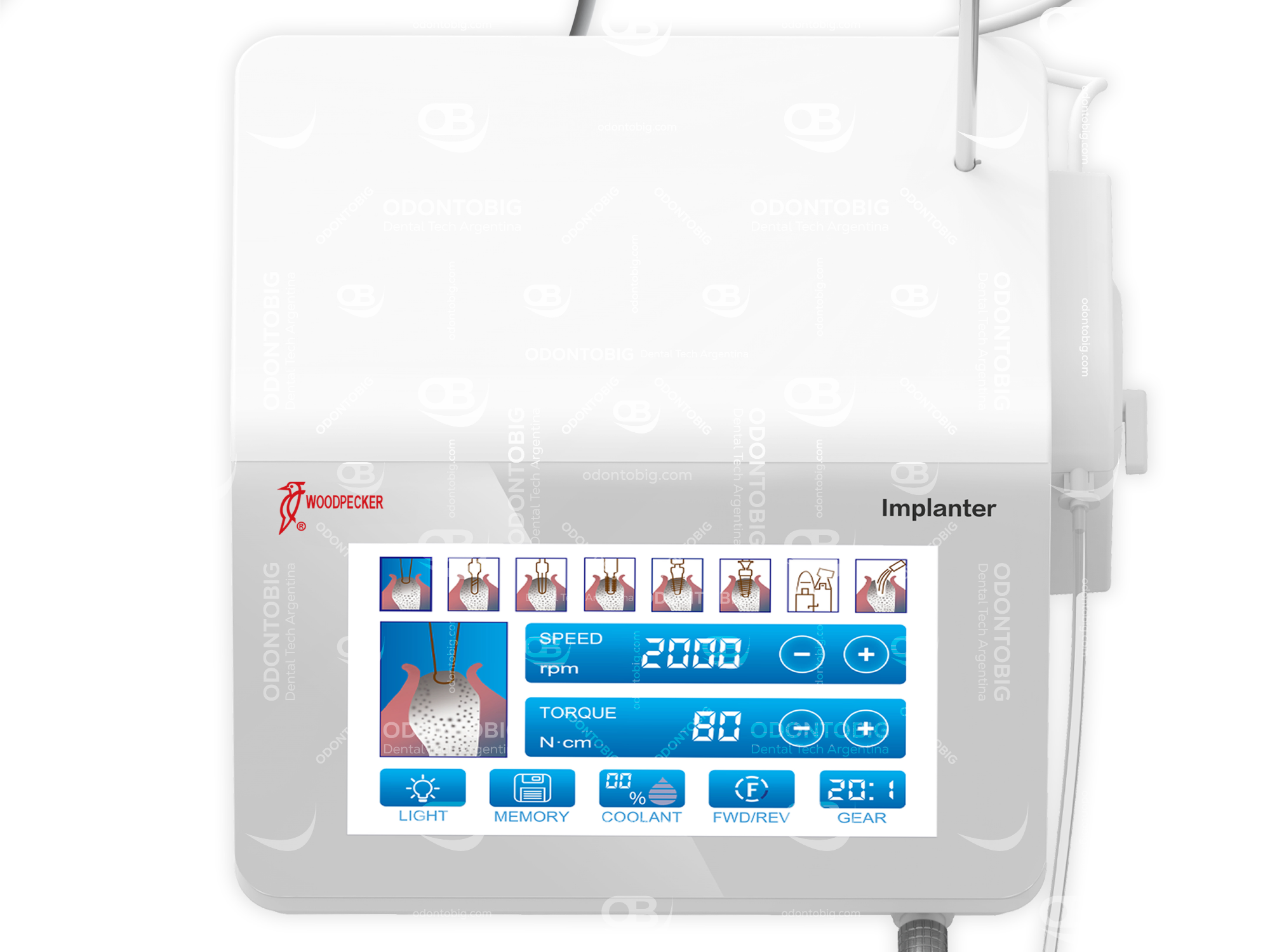 El Implanter de Woodpecker está desarrollado como una plataforma quirúrgica para implantología que combina precisión, potencia, irrigación y control en una misma unidad, con una propuesta orientada a una cirugía más estable, más cómoda y tecnológicamente mejor resuelta que equipos de otras marcas.