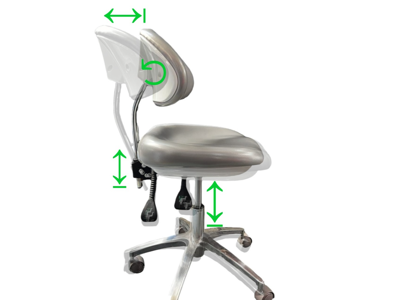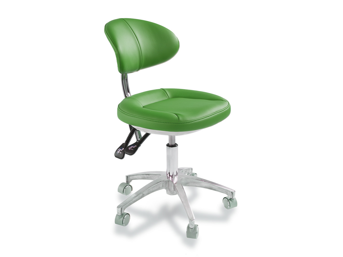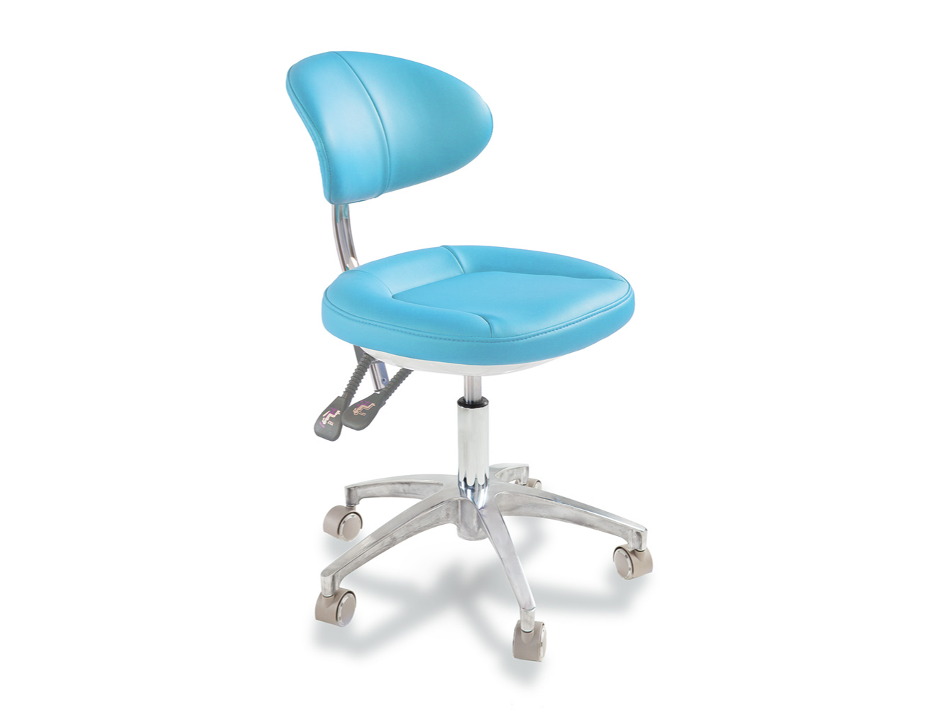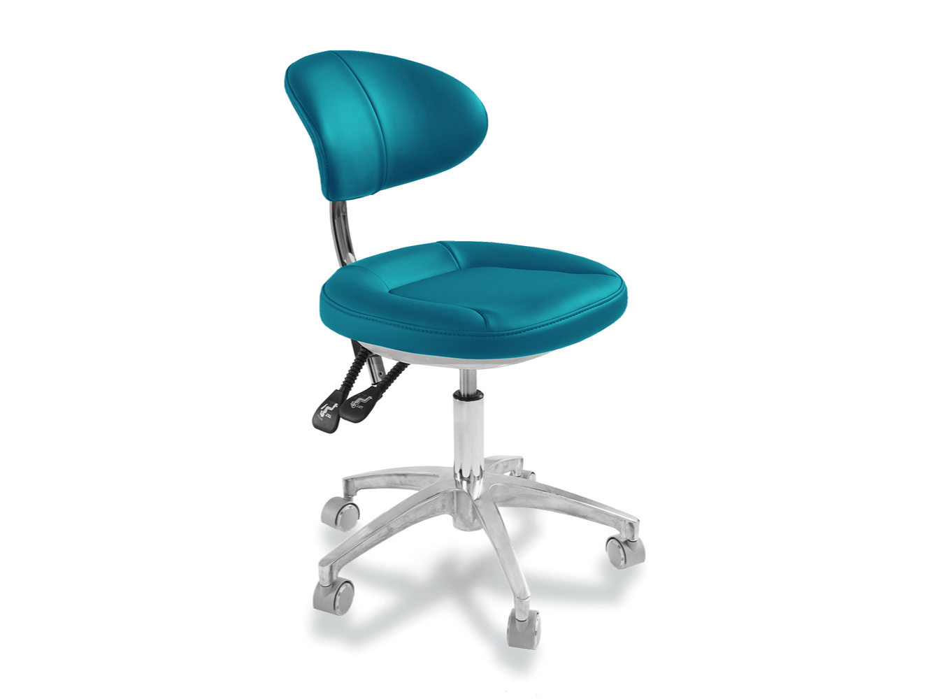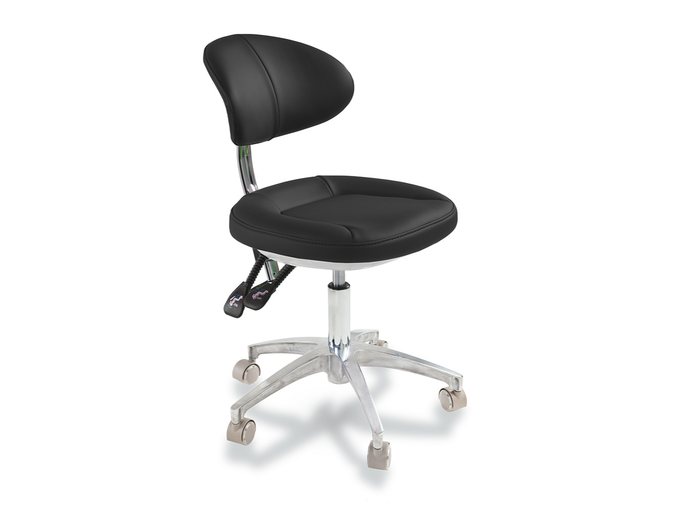 La banqueta premium de eco-cuero soft bordado con tecnología viscoelástica, combina elegancia y funcionalidad. Su diseño ergonómico incluye un ajuste de 6 vías, permitiendo al profesional seleccionar la posición adecuada según sus necesidades. El respaldo anatómico acolchado ofrece contención lumbar y soporte óptimo durante largas jornadas. Ideal para consultorios y clínicas que buscan máxima comodidad y calidad.