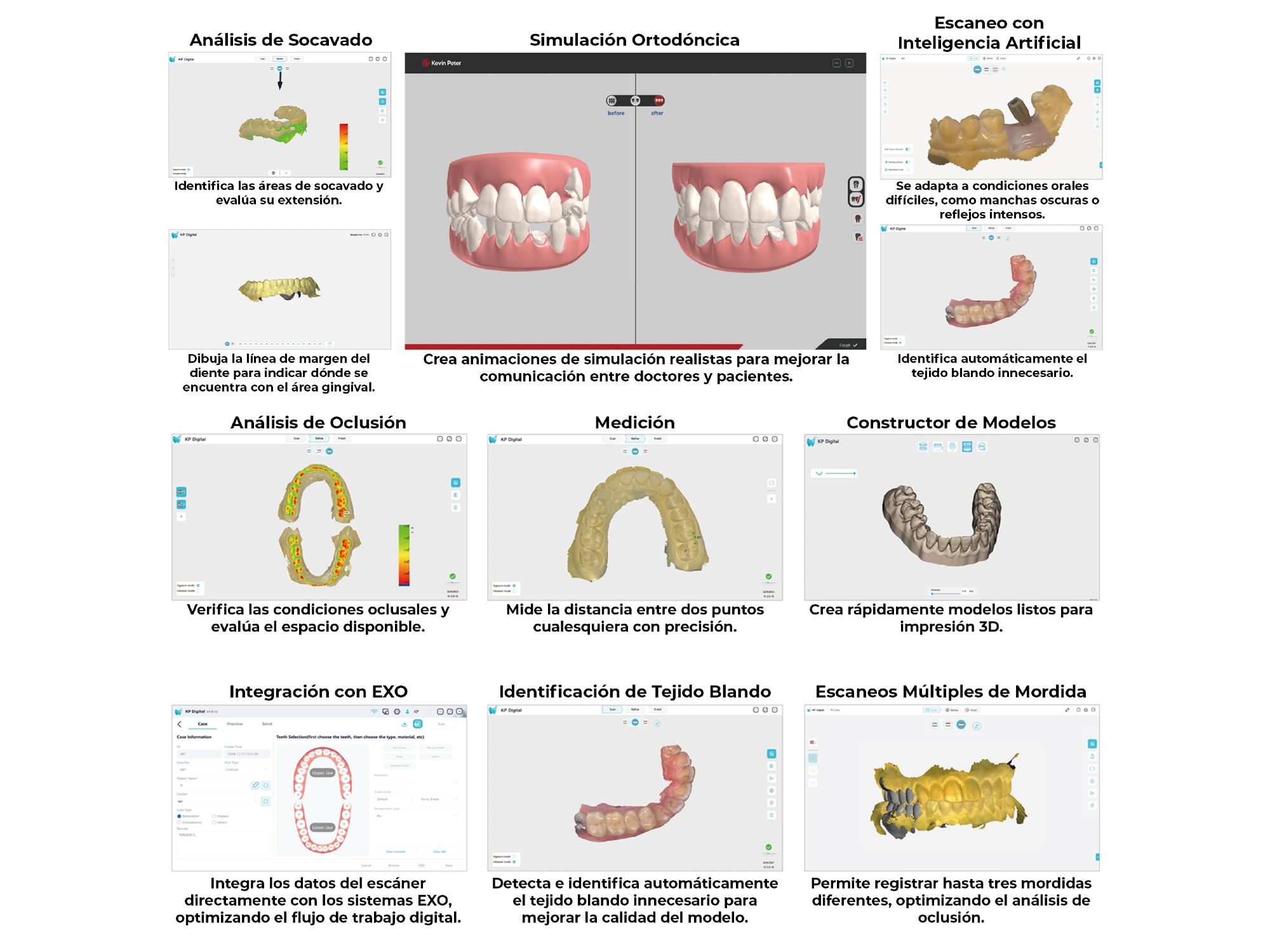 • Integración directa con EXO para optimizar el flujo de trabajo digital entre escáner, software y laboratorio.