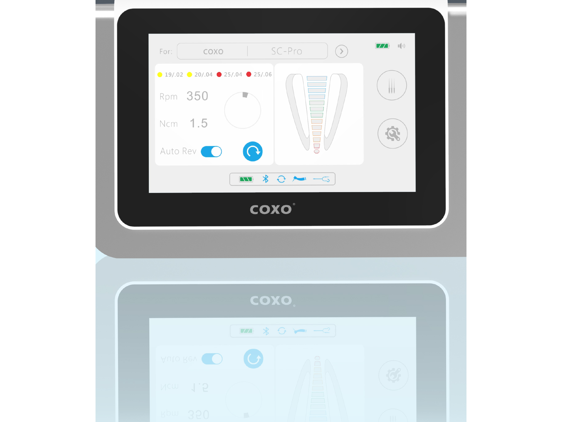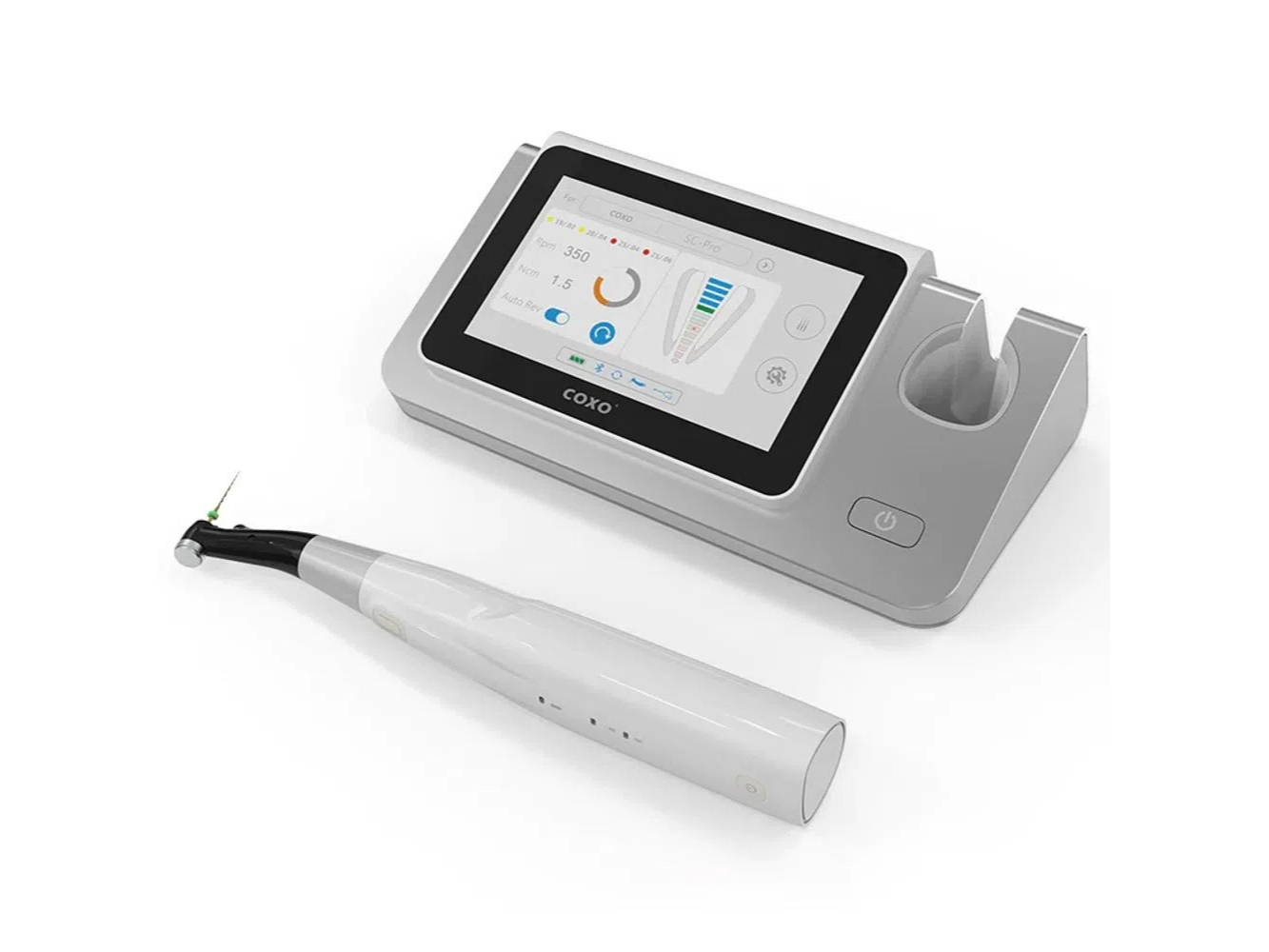 El C-Smart-I Pilot de Coxo es un dispositivo integral que combina endomotor inalámbrico y localizador apical digital en un solo equipo, ofreciendo precisión, comodidad y seguridad en los tratamientos endodónticos.