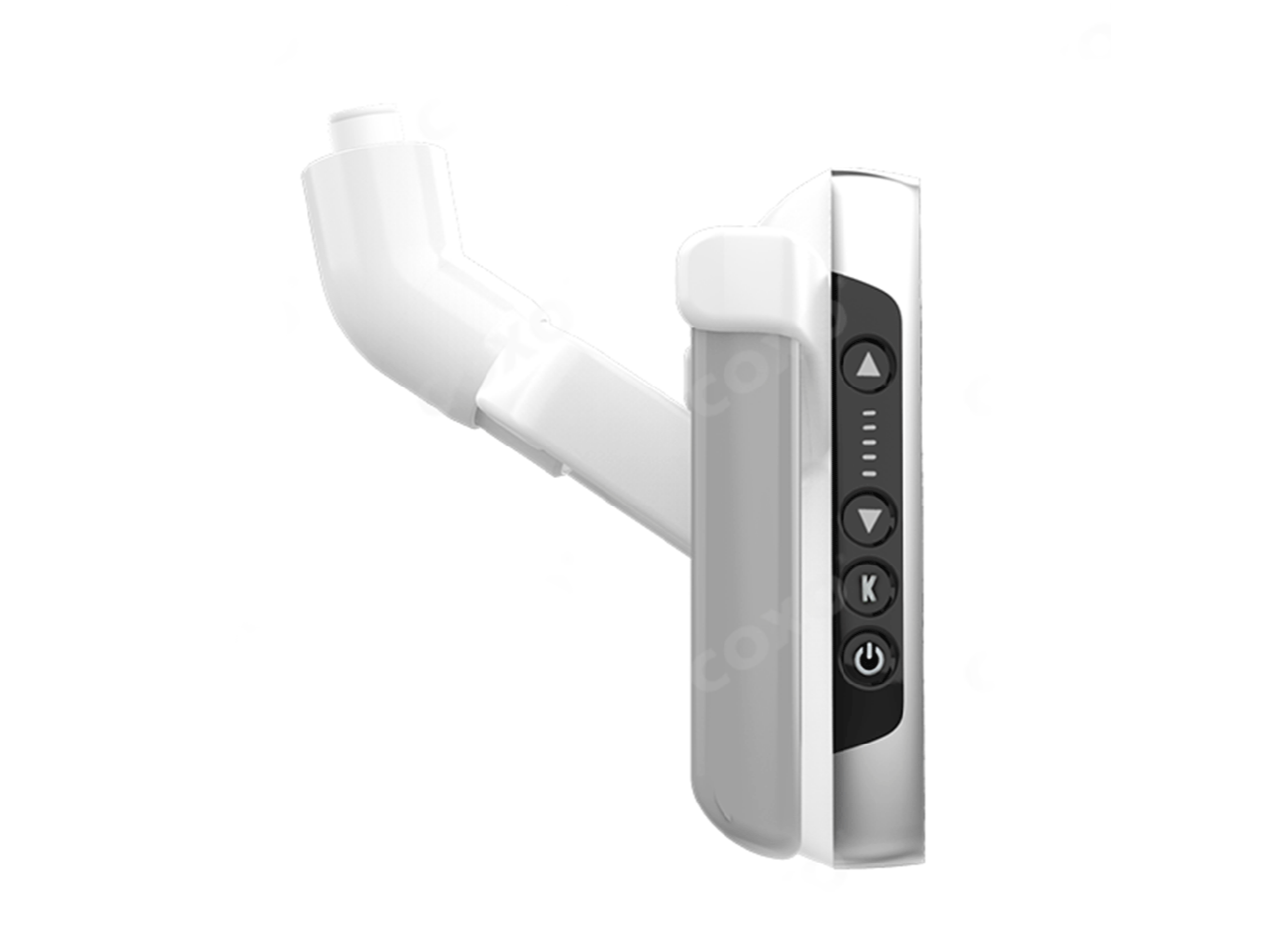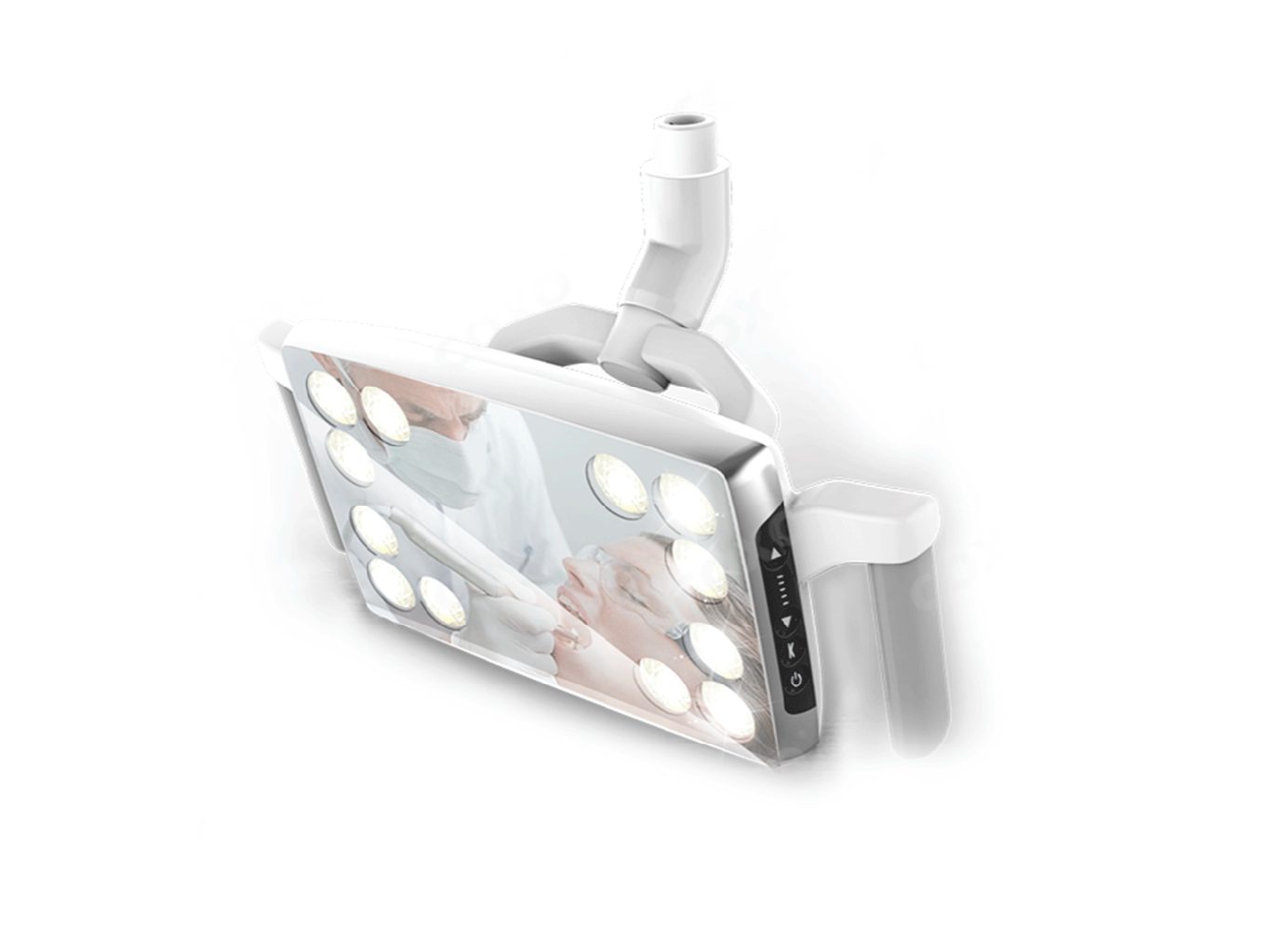 Su forma ergonómica incluye controles táctiles dobles en ambos lados para facilitar el manejo con cualquier mano, así como un mango extraíble que puede esterilizarse con alcohol o en autoclave, asegurando la máxima higiene.