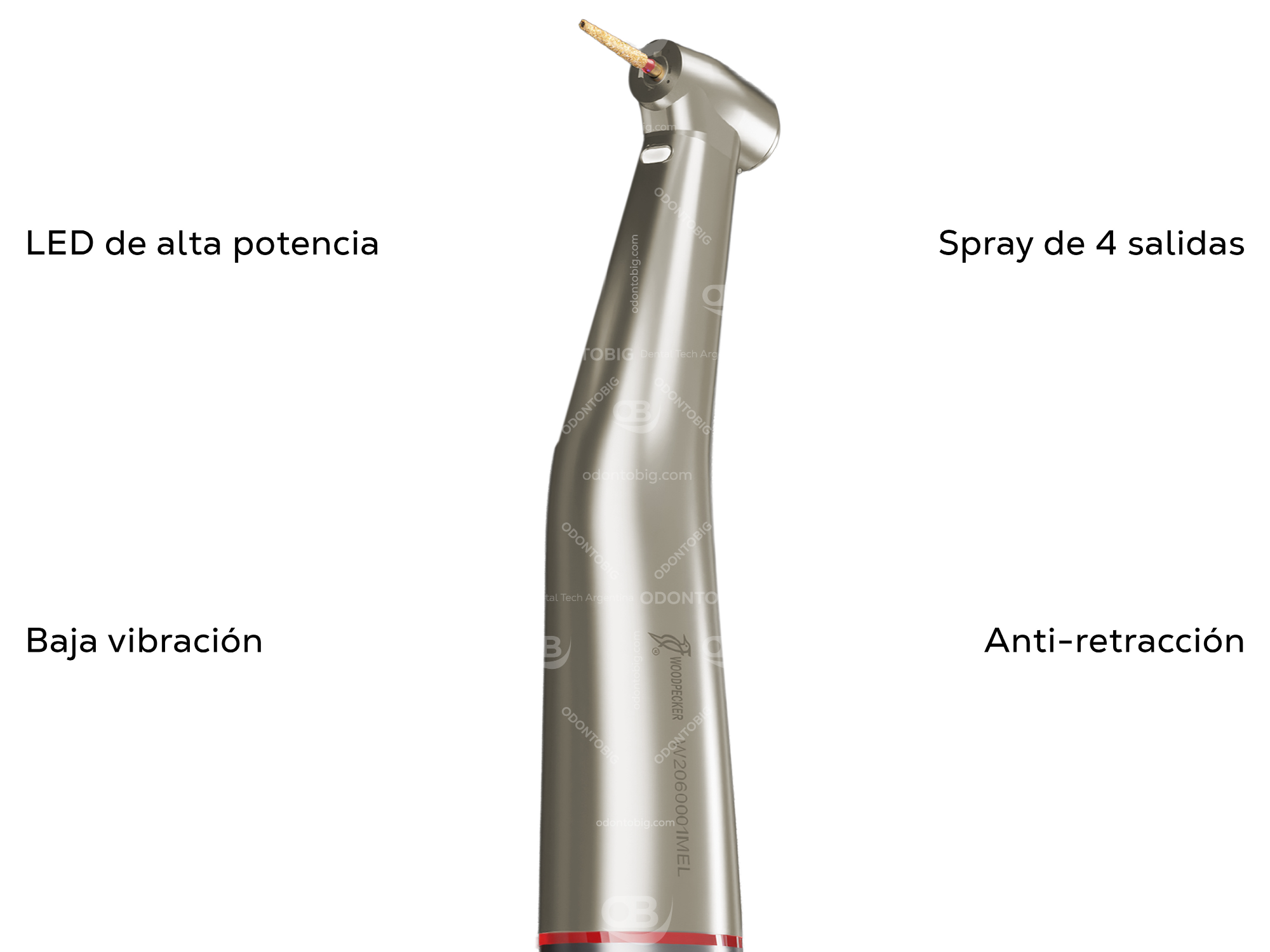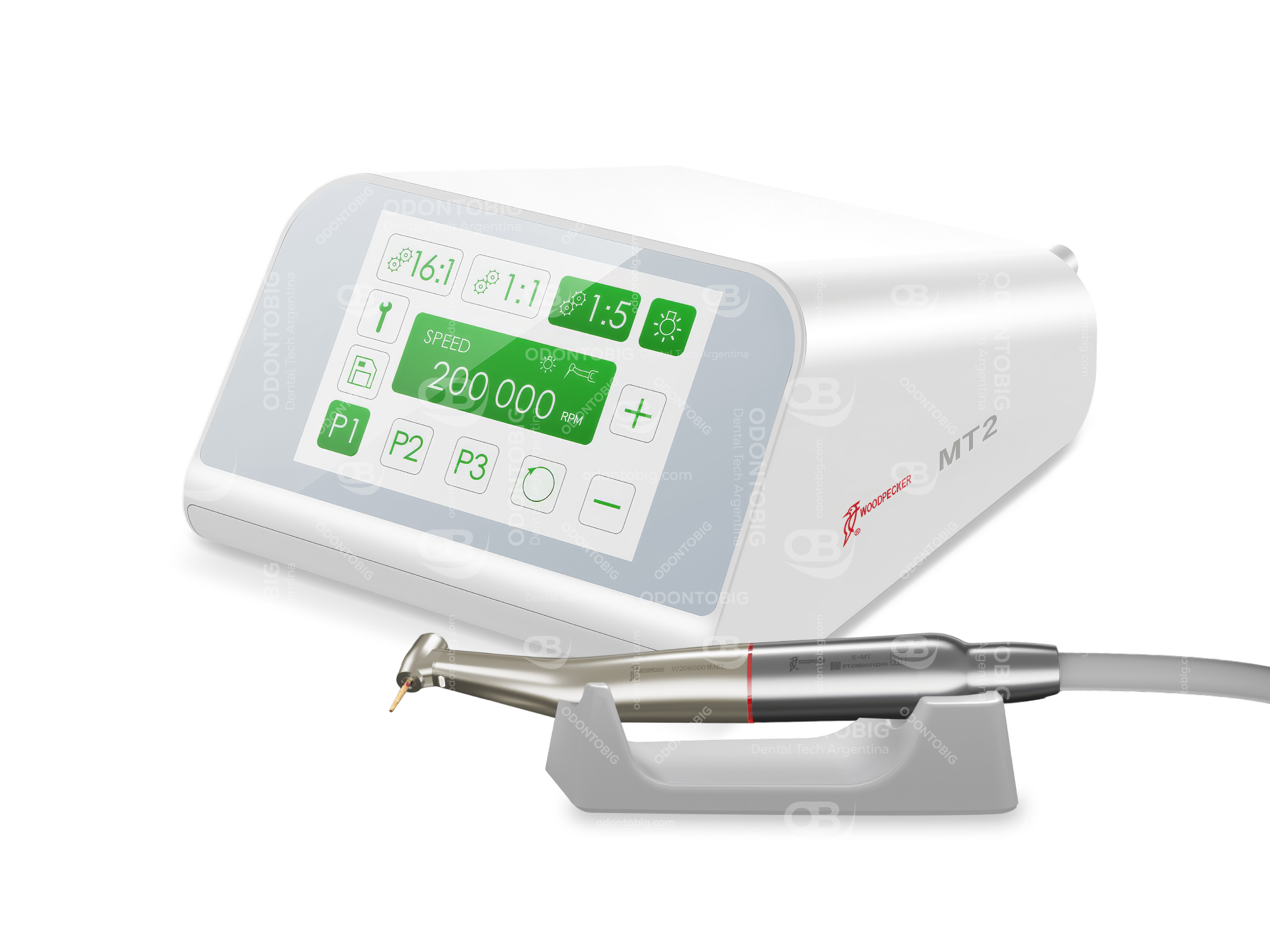 El MT2 de Woodpecker es un micromotor eléctrico con contra ángulo 1:5 push button LED, pensado para profesionales que buscan una preparación dental más precisa, más estable y claramente superior a la experiencia de trabajo que entrega una turbina convencional.