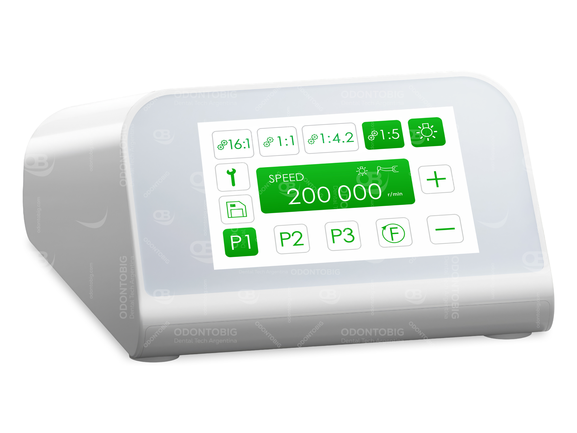 Su propuesta combina potencia controlada, menor vibración, mejor sujeción de la fresa, refrigeración eficiente y una interfaz moderna que simplifica el uso diario. Es un equipo orientado a clínica real: más control, más prolijidad de corte y una sensación de trabajo mucho más fina en procedimientos que exigen exactitud.