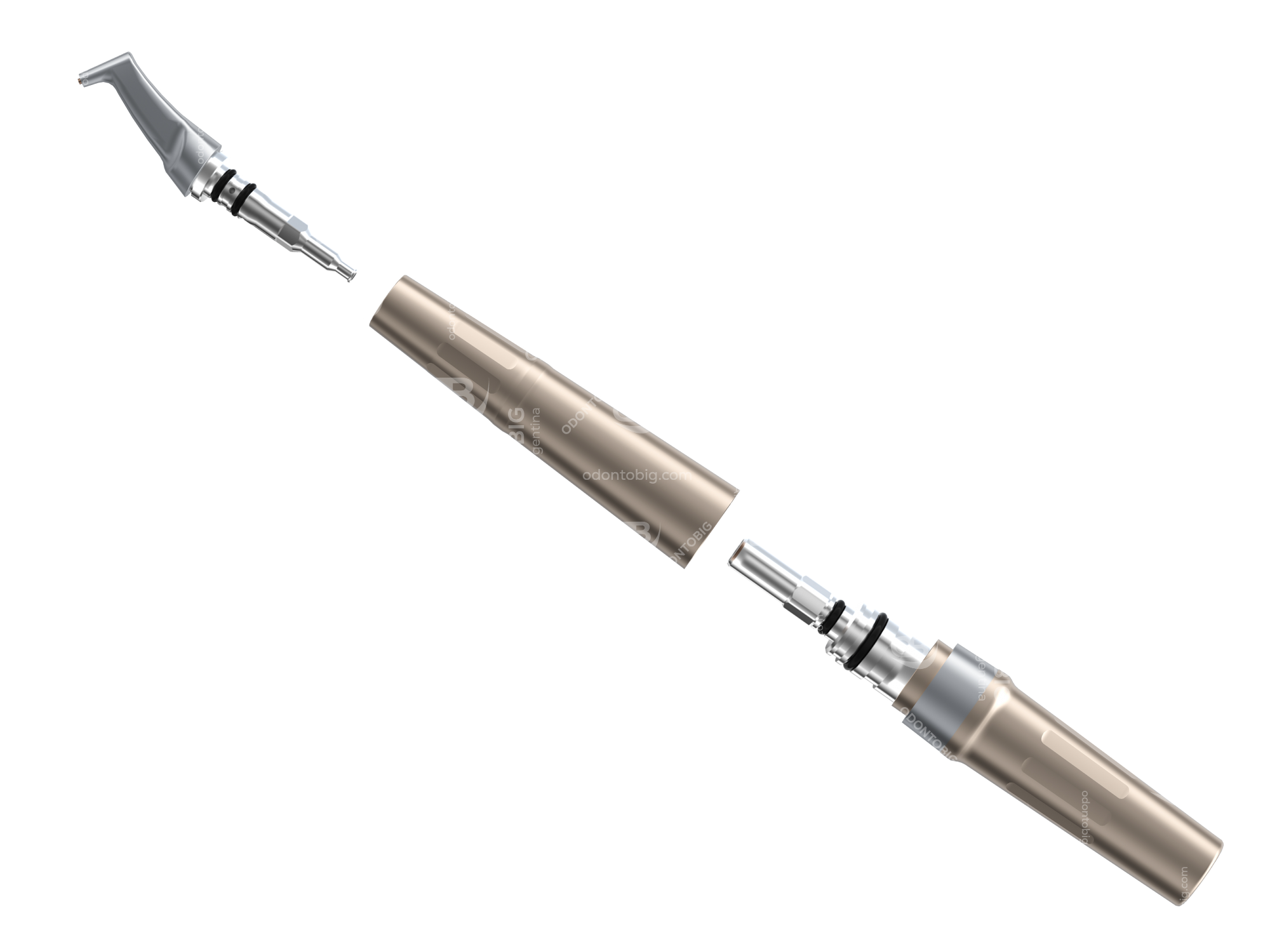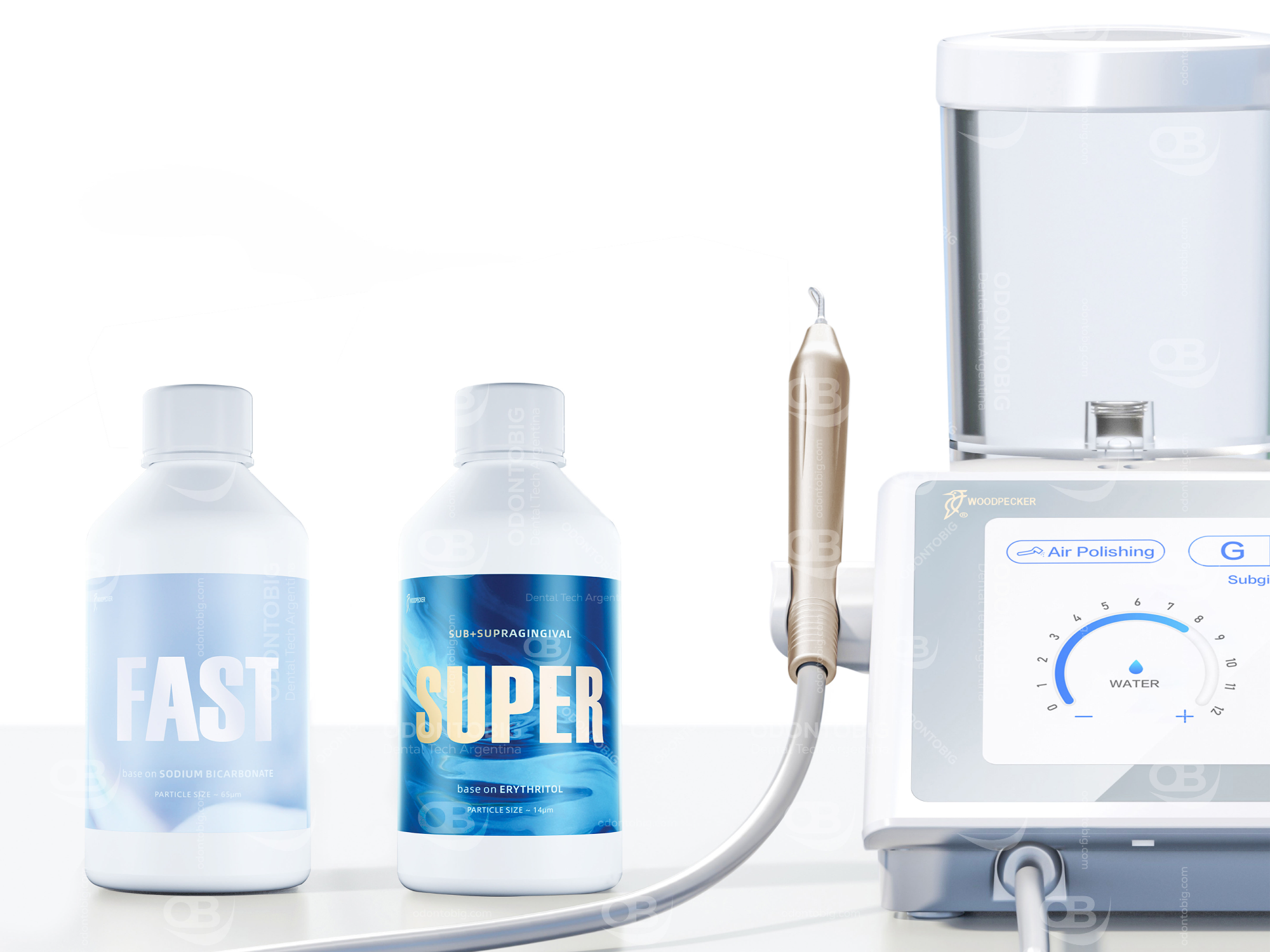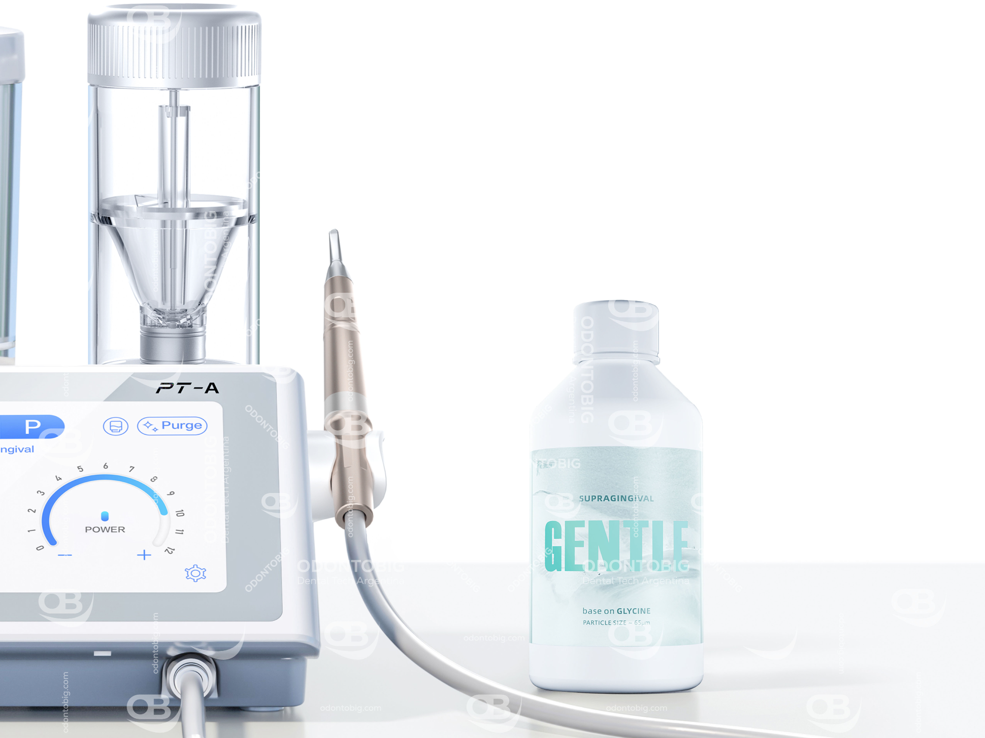 En air polishing, el equipo ofrece una remoción eficiente de placa, biofilm, manchas y suciedad blanda, incluso en zonas difíciles como áreas interproximales, superficies oclusales, brackets y estructuras complejas. El sistema subgingival permite una mejor limpieza en superficies radiculares y zonas periimplantarias, mientras que el diseño de boquilla de pequeño calibre concentra mejor el flujo para optimizar el rendimiento y reducir la dispersión innecesaria del polvo. Además, el handpiece de air polishing de tres secciones facilita la limpieza y el mantenimiento, aportando practicidad y mayor vida útil.