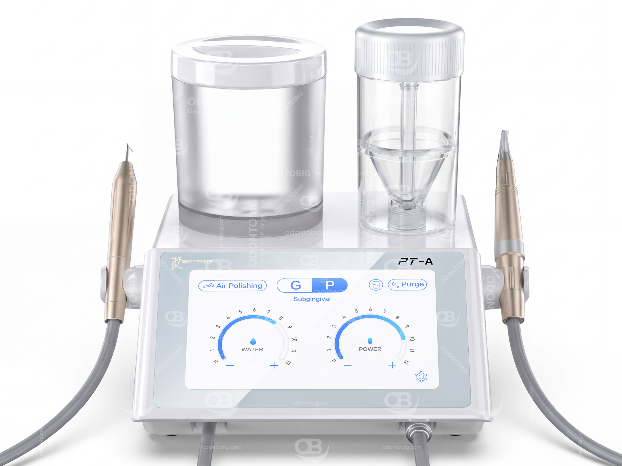 El Woodpecker PT-A no es simplemente un cavitador con air polisher incorporado. Es una plataforma clínica integral para profesionales que buscan más control, más versatilidad y una mejor experiencia de trabajo en profilaxis, periodoncia, mantenimiento periimplantario y soporte endodóntico.