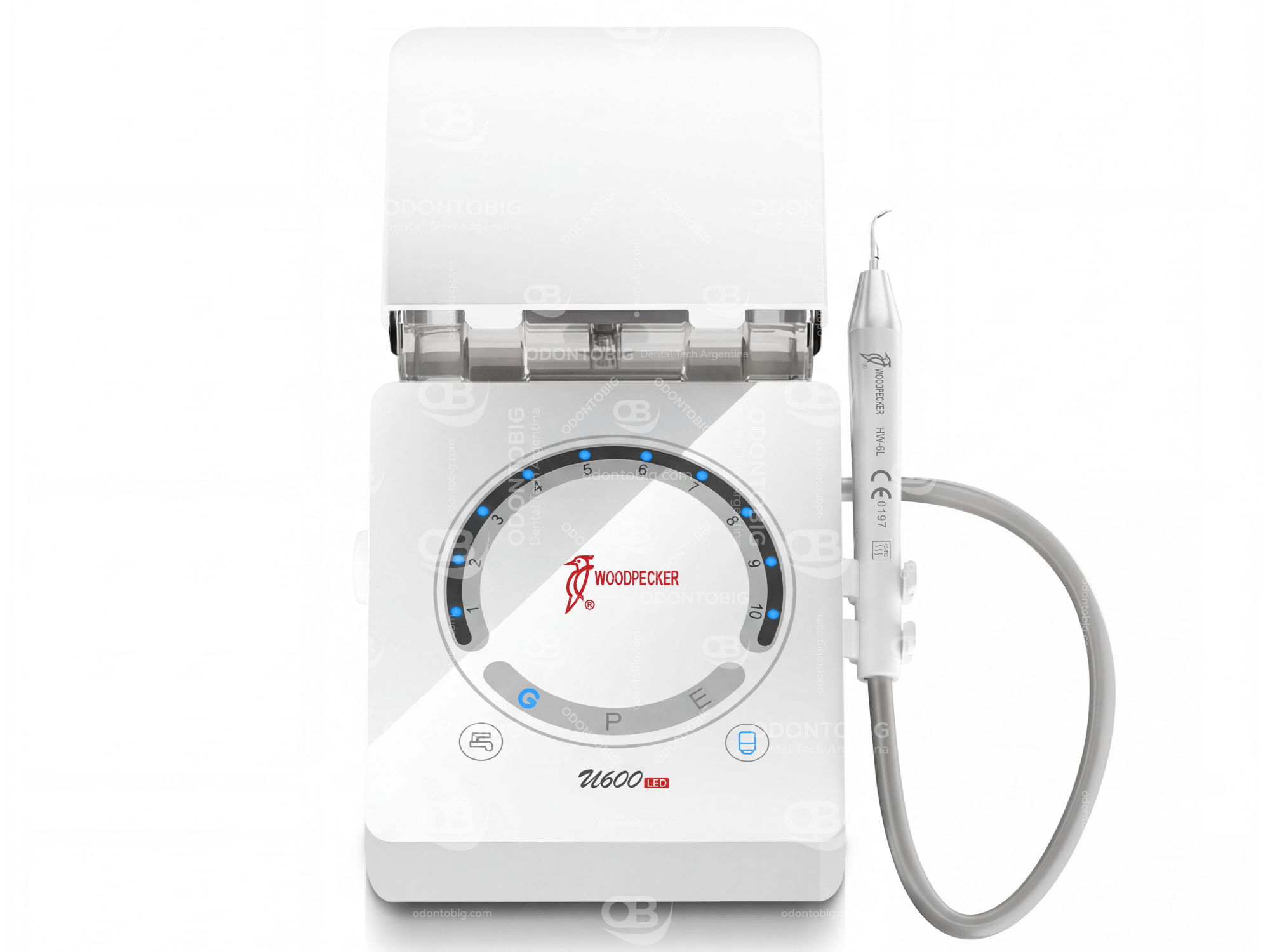 El Woodpecker U600 LED es un cavitador ultrasónico de gama superior con inteligencia artificial, pensado para consultorios y clínicas que buscan más tecnología, más versatilidad clínica y una experiencia de trabajo claramente más avanzada que la de un scaler convencional. Es un equipo diseñado para ir mucho más allá del detartraje tradicional, integrando funciones de scaling, perio, endodoncia e irrigación, con una plataforma moderna, estable y cómoda para el trabajo diario.