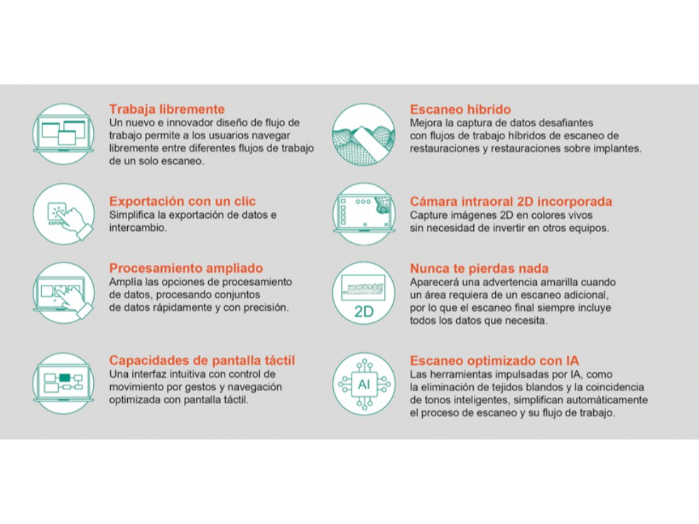 • Escaneo más ágil y preciso que mejora la productividad del consultorio.