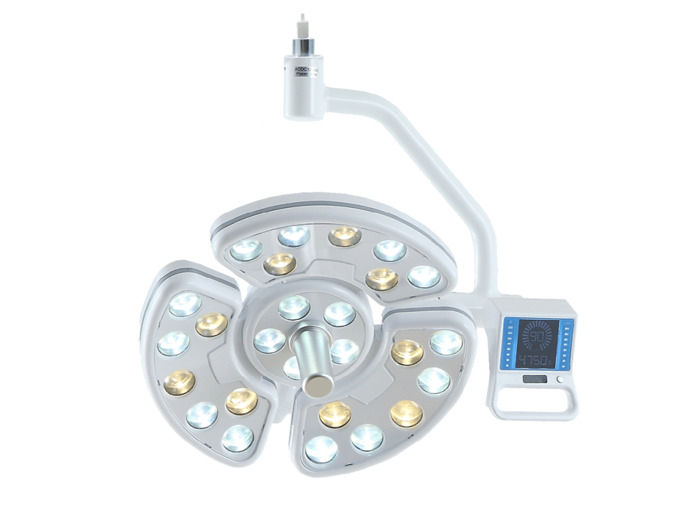 Equipada con 26 LED de alta potencia, esta lámpara proporciona un rango de intensidad ajustable de 10.000 a 90.000 lux, con control inductivo de 8 niveles de brillo para adecuarse a cada situación clínica.