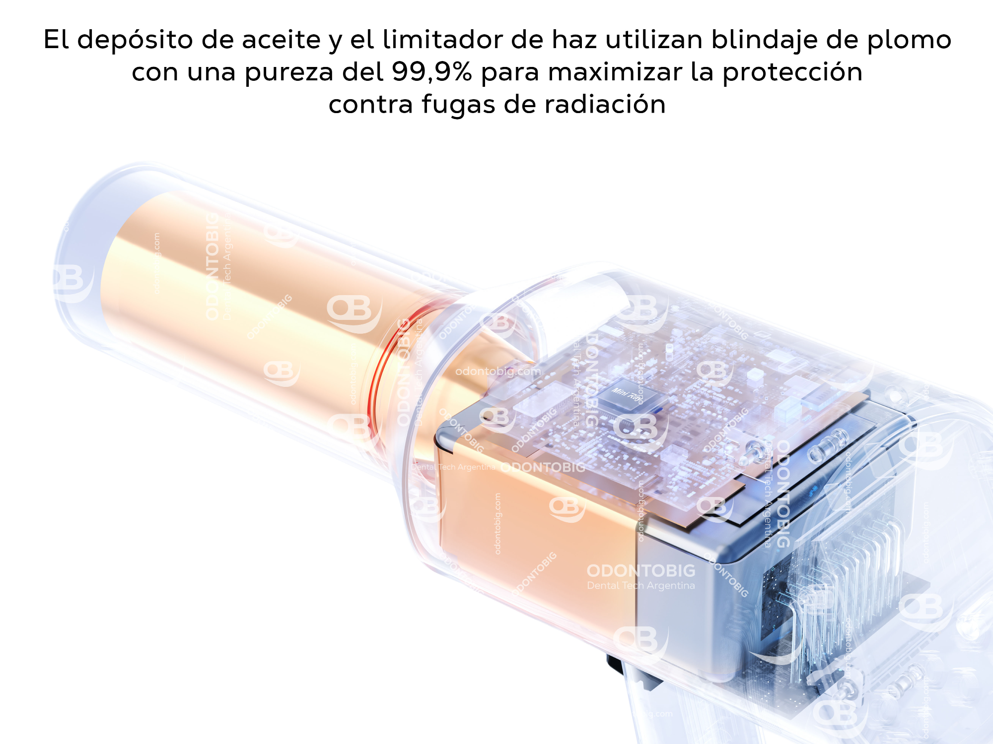 En seguridad, Woodpecker plantea una propuesta especialmente sólida. El Mini Ray destaca una doble protección frente a fugas de radiación, con blindaje en el tanque de aceite y en el limitador del haz mediante plomo puro al 99,9%, y una fuga de radiación desde la superficie del cuerpo de hasta ≤ 0,05 mGy/h. Es un enfoque que refuerza la percepción de equipo serio, bien diseñado y pensado para trabajar con mayor tranquilidad.