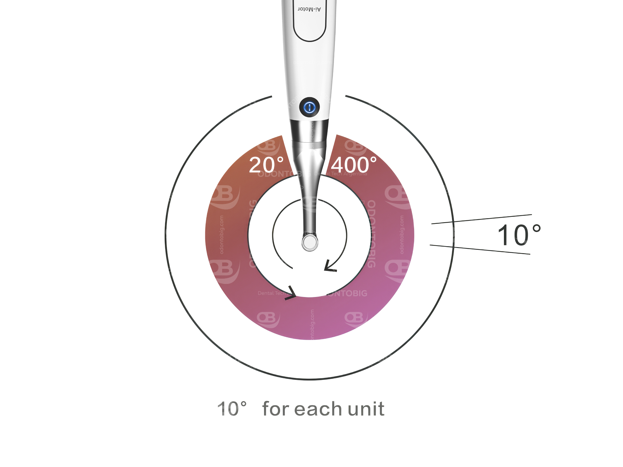 A nivel funcional, el Ai-Motor ofrece 5 modos de trabajo: CW, CCW, REC, ATR y EAL. Esto le permite cubrir desde preparación rotatoria convencional hasta reciprocación, reversa adaptativa por torque y uso como localizador apical. La velocidad puede ajustarse entre 100 y 1200 rpm, con un rango de torque de 0,4 a 5,0 N·cm, entregando una configuración amplia para distintos sistemas y preferencias clínicas.