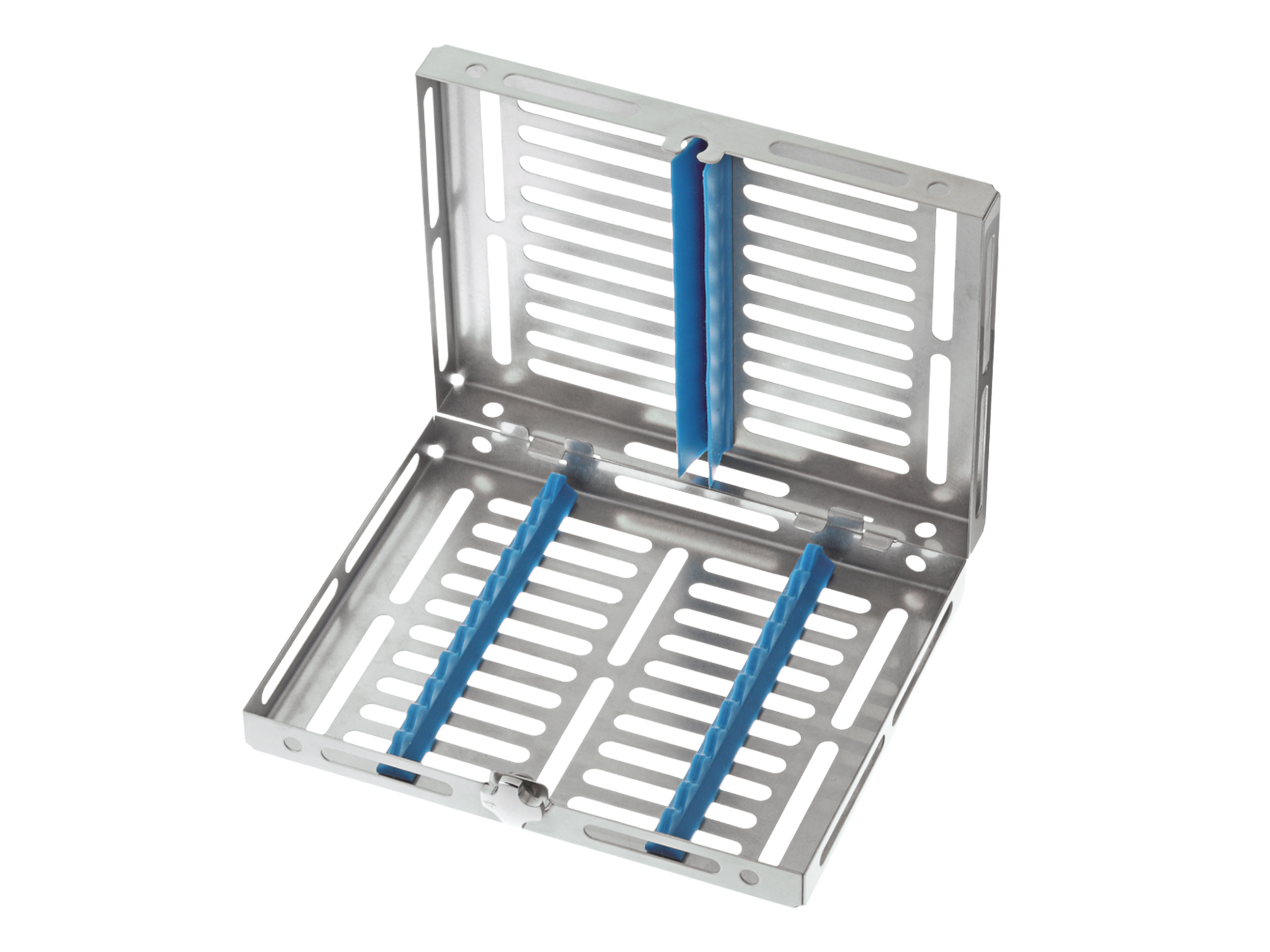 • Diseño con esquinas abiertas y huecos anchos: optimiza el drenaje y reduce significativamente el tiempo de secado de los instrumentos tras la esterilización.
