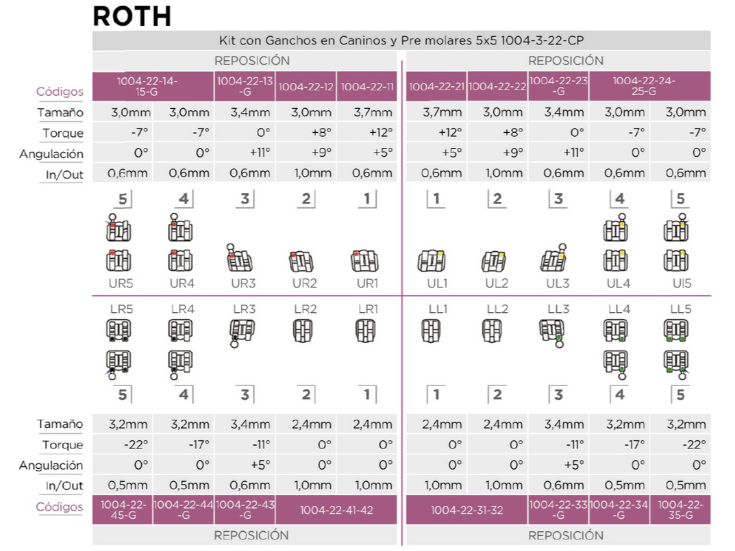 Bracket Metálico RX Roth 0.22 C/Hooks - Caso x 20u. EURODONTO Bracket convencional de alta precisión, diseñado para ofrecer el mejor equilibrio entre rendimiento clínico, estética y costo, optimizando la comodidad y adaptación del paciente al tratamiento ortodóncico. Características principales • Prescripción: Roth 0.22. • Incluye: Ganchos en caninos y premolares. • Diseño moderno y tecnológico: o Piezas más bajas y cantos redondeados para mayor confort. o Facilita la adaptación del paciente a la ortodoncia. • Alta precisión en torque y angulación: Gracias a su proceso de fabricación controlado. Ventajas técnicas • Base amplia y arenada: o Proporciona mejor adhesión al diente. o Aumenta la resistencia a los esfuerzos masticatorios. o Reduce la pérdida de piezas durante el tratamiento. • Fabricación de alta tecnología: o Mantiene consistencia en las medidas. o Ofrece gran fidelidad en los parámetros de torque y angulación. Presentación: Caso x 20 unidades Marca: Eurodonto Origen: China/Brasil