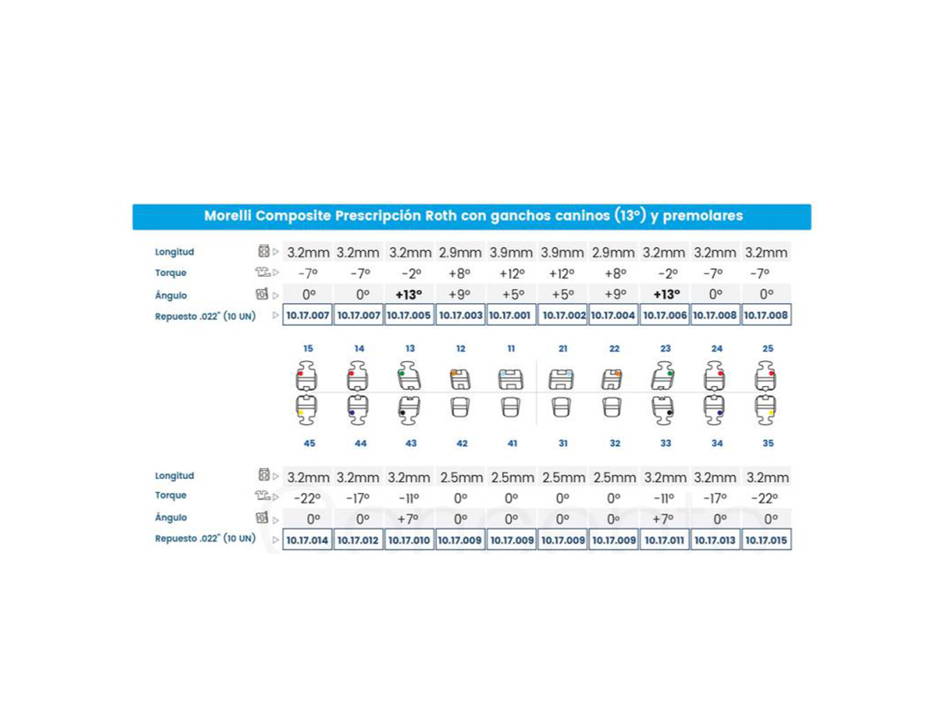 • Tip caninos superiores: +13°, asegurando un posicionamiento preciso y eficiente.