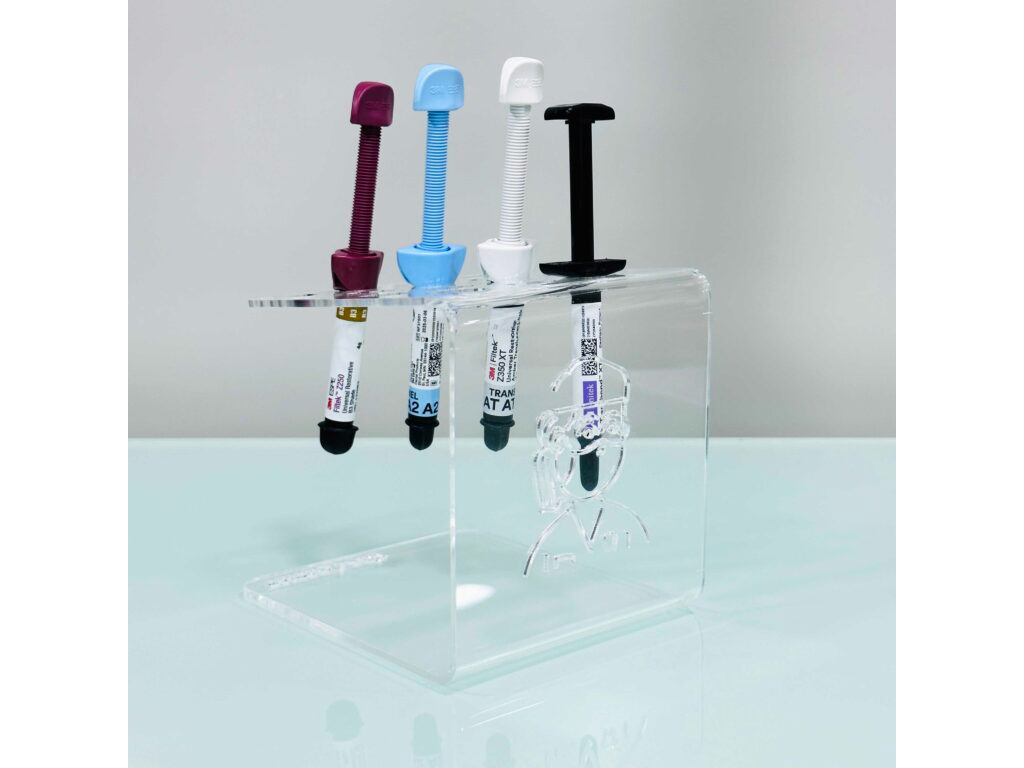 Soporte acrílico de alta calidad diseñado para organizar hasta 14 jeringas de uso clínico. Pertenece a la línea The Dentist®, que combina arte y funcionalidad para generar comunidad en la profesión odontológica.