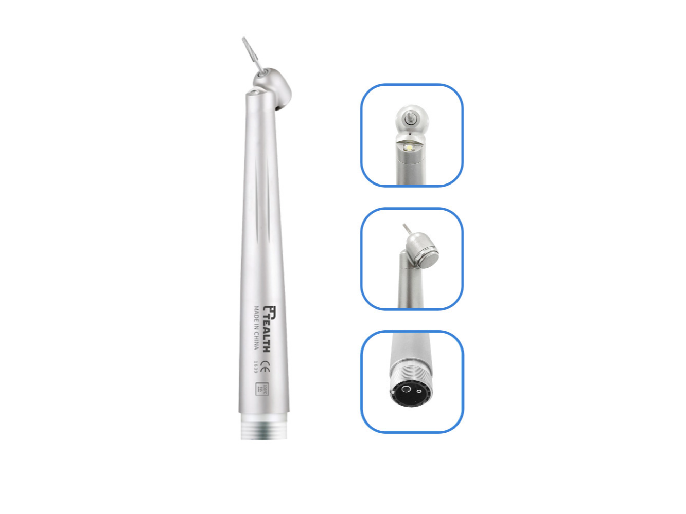 Turbina LED Angulada 45º 1 Spray Push Button - 2300PL-45 (45SPL-Q-B2CK-45L B2). TEALTH Especial para cirugía con máxima visibilidad y acceso La Turbina LED Angulada 45° de TEALTH ha sido desarrollada para procedimientos quirúrgicos que requieren precisión y acceso en ángulos complejos. Su cabezal inclinado a 45 grados permite trabajar en zonas de difícil alcance, facilitando la exodoncia de terceros molares y otros tratamientos quirúrgicos. El sistema de luz LED autogenerada asegura una iluminación clara y constante del campo operatorio, mientras que el rociador simple spray mantiene la refrigeración necesaria. Su construcción en acero inoxidable, cobre y aluminio con rodamientos cerámicos garantiza durabilidad, resistencia y un funcionamiento suave. Características principales • Cabezal angulado a 45° para acceso en cirugía • Luz LED autogenerada estable • Rociador simple spray para refrigeración directa • Push button para cambio rápido de fresas • Sistema Borden 2 vías • Velocidad de rotación: 300.000 – 400.000 r/min • Diámetro de fresa: Ø 1,6 mm • Nivel sonoro: ≤ 70 dB • Presión de aire: 245 – 380 KPa • Presión de agua atomizada: 200 KPa • Presión de aire atomizado: 200 KPa • Construcción en acero inoxidable, cobre y aluminio con rodamientos cerámicos Mantenimiento y esterilización 1. Retirar la fresa después de cada uso 2. Limpiar el exterior con solución de alcohol 3. Lubricar con aceite en spray antes de la esterilización 4. Colocar en bolsa para autoclave y esterilizar a 135 °C durante 12 minutos (LED esterilizable) 5. No utilizar soluciones ácidas ni esterilizar con residuos químicos 6. Guardar en un lugar limpio, seco y libre de polvo, azufre o sal Presentación • Turbina LED Angulada 45° 2300PL-45 (45SPL-H-B2) • Marca: TEALTH