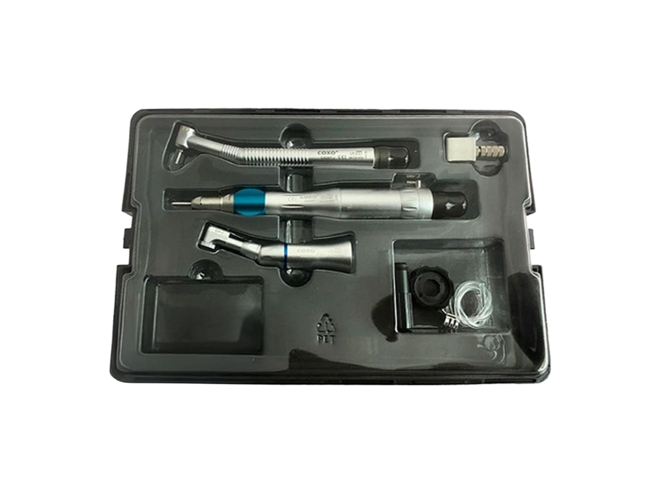 El Kit Académico COXO ha sido diseñado especialmente para estudiantes y prácticas odontológicas, ofreciendo un conjunto de piezas rotatorias confiables y de alto rendimiento. Incluye turbina de alta velocidad, micromotor neumático, contra ángulo y pieza de mano recta, todos compatibles entre sí y listos para cubrir las necesidades clínicas básicas.