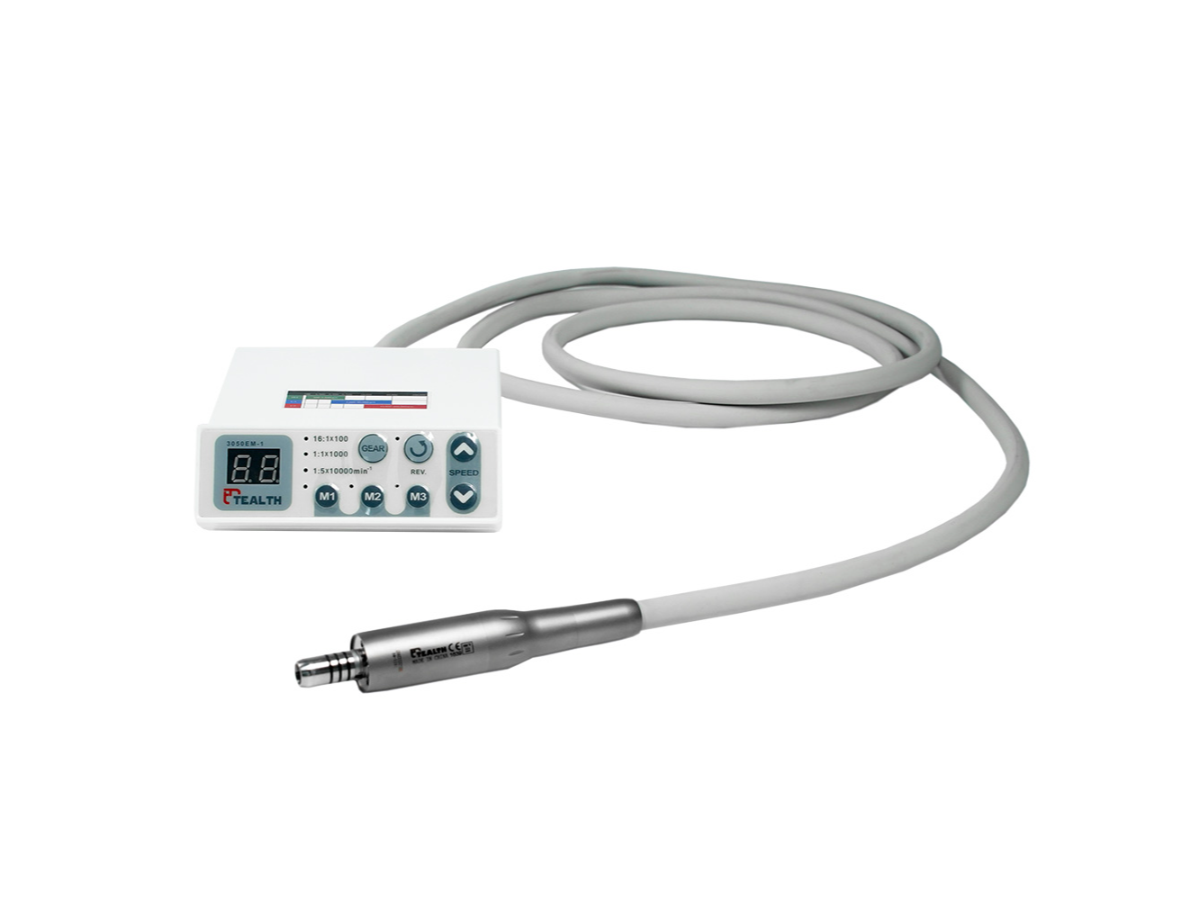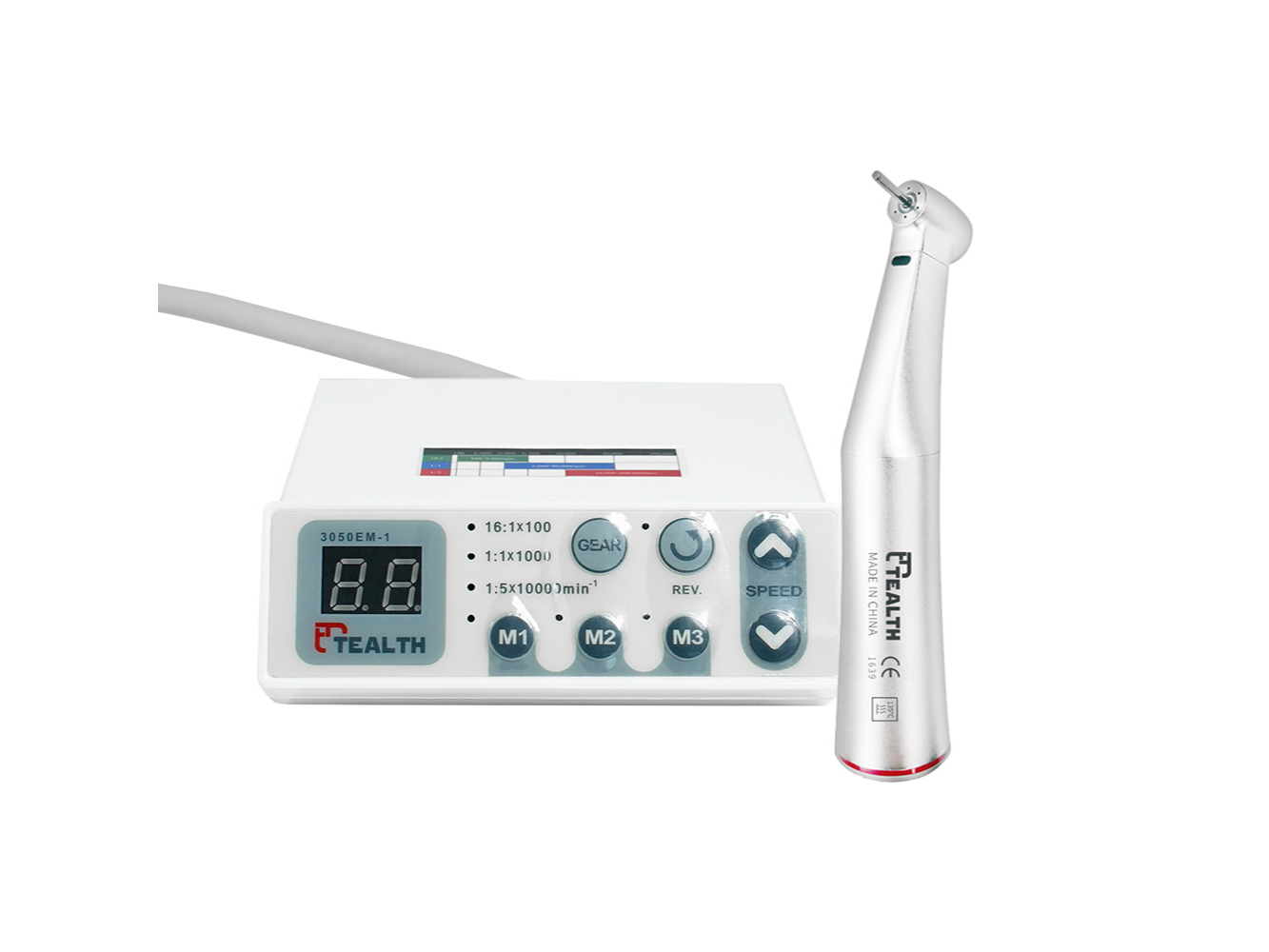 El kit TEALTH combina el Micromotor Eléctrico Externo 1021-M4 (DIL-20C) con el Contra Ángulo 1:5 de Fibra Óptica 1020L-M4 (I05F-01C), ofreciendo una solución integral para procedimientos odontológicos que requieren alta velocidad, iluminación estable y refrigeración eficiente. Con tecnología brushless (sin escobillas), asegura mayor durabilidad, operación ultra silenciosa y estabilidad en la potencia. Su compatibilidad con diferentes contra ángulos lo convierte en un equipo versátil para distintas especialidades clínicas.