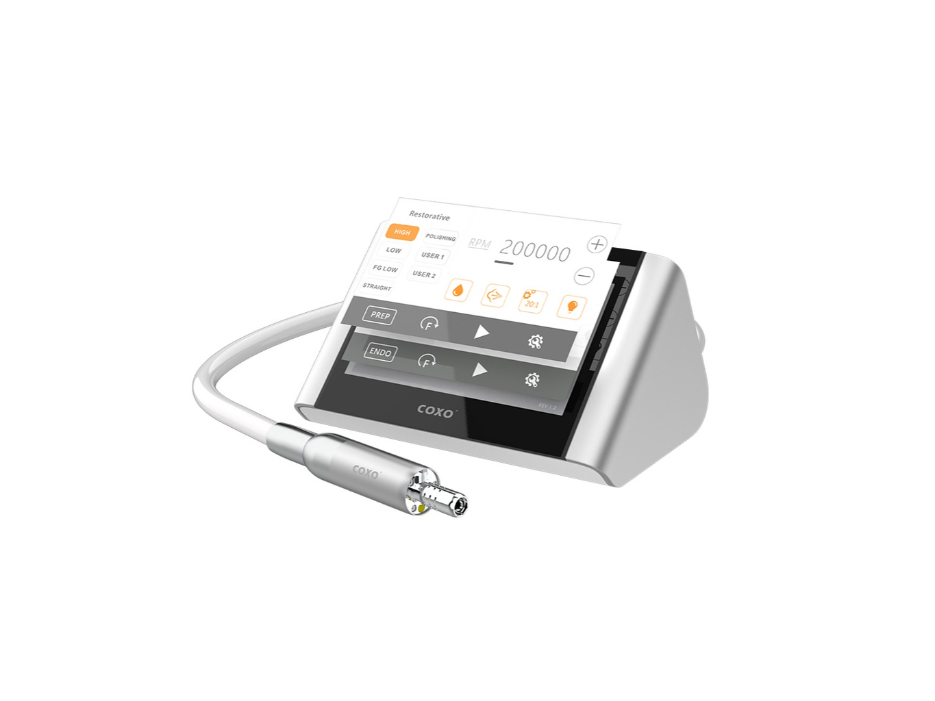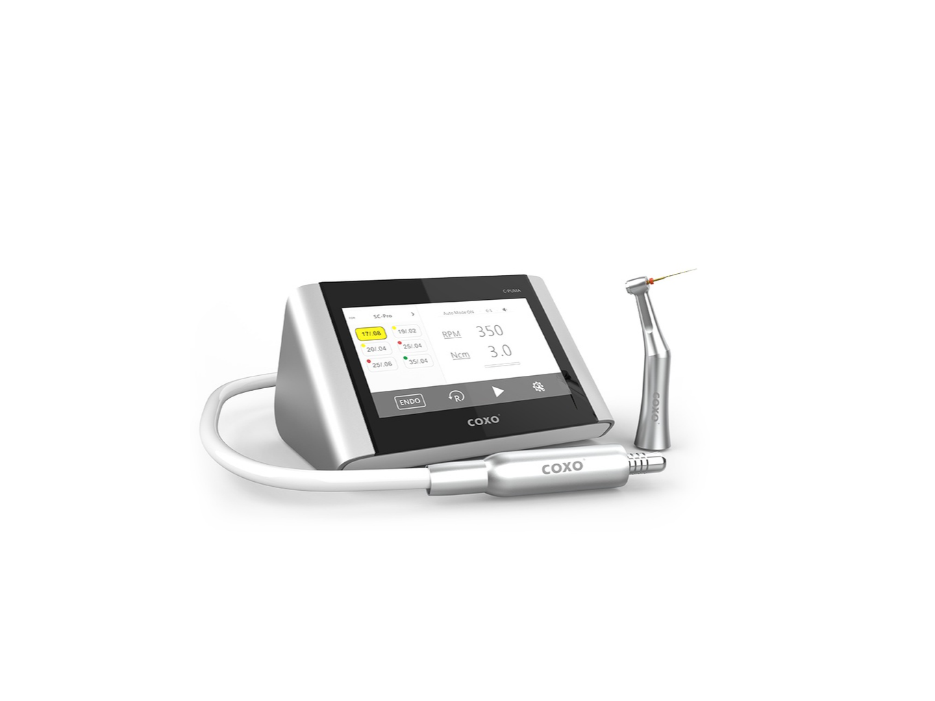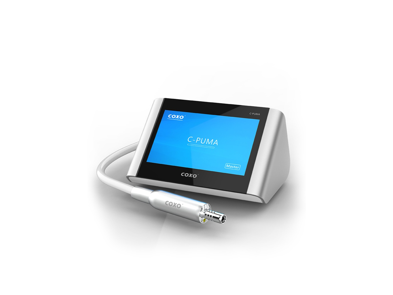 El C-PUMA Master de COXO integra en un mismo equipo un micromotor eléctrico y endomotor, ofreciendo máxima versatilidad para procedimientos clínicos y endodónticos. Su diseño de última generación con pantalla LCD táctil de 5” permite controlar todos los parámetros de forma simple e intuitiva, con operación de un solo dedo.