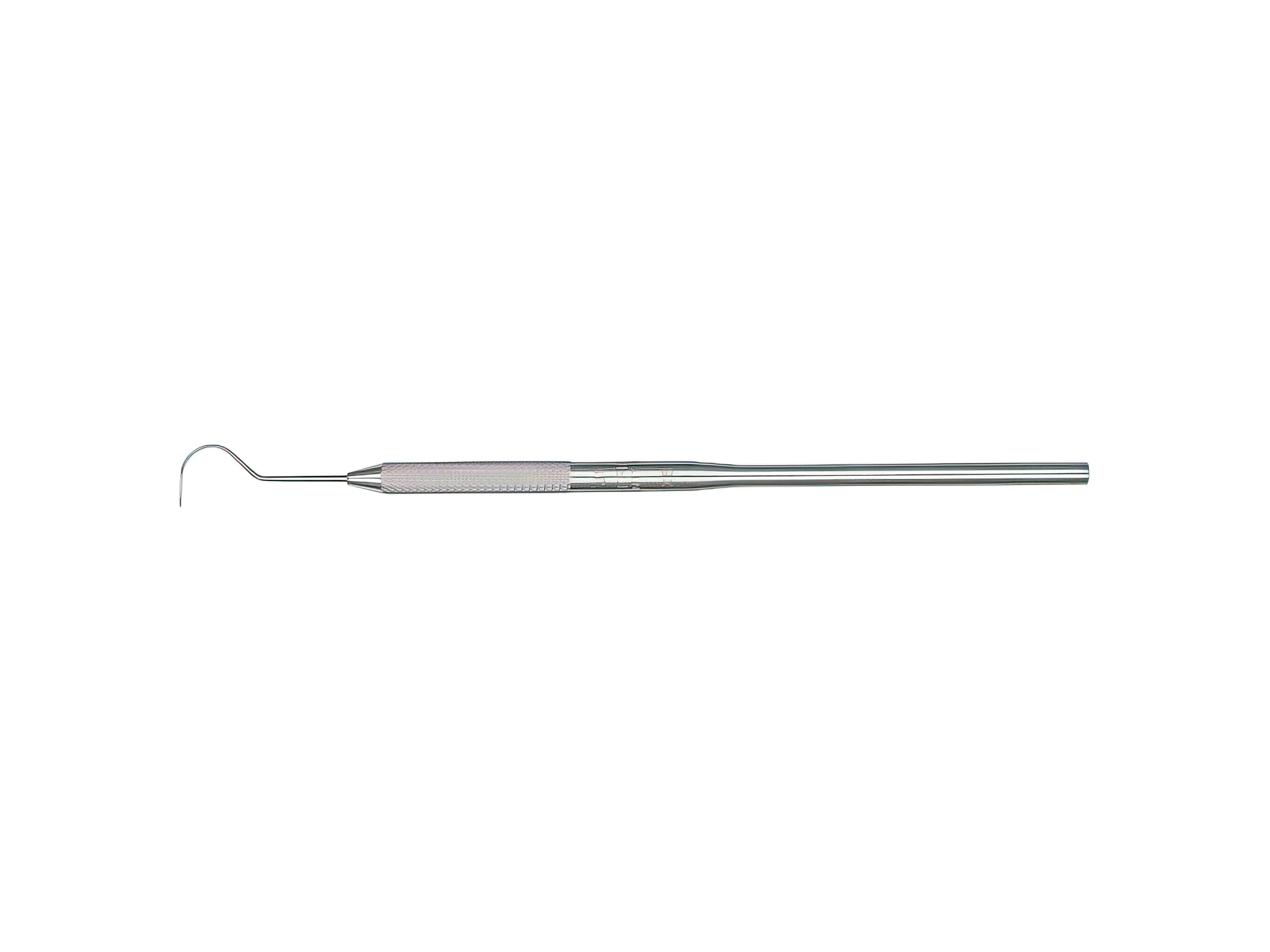 Explorador curvo simple Nº 23, diseñado para la detección de caries, evaluación de fisuras, surcos y superficies dentarias. Su punta fina y curva permite acceder fácilmente a zonas de difícil alcance, brindando al odontólogo un diagnóstico clínico más preciso y confiable.