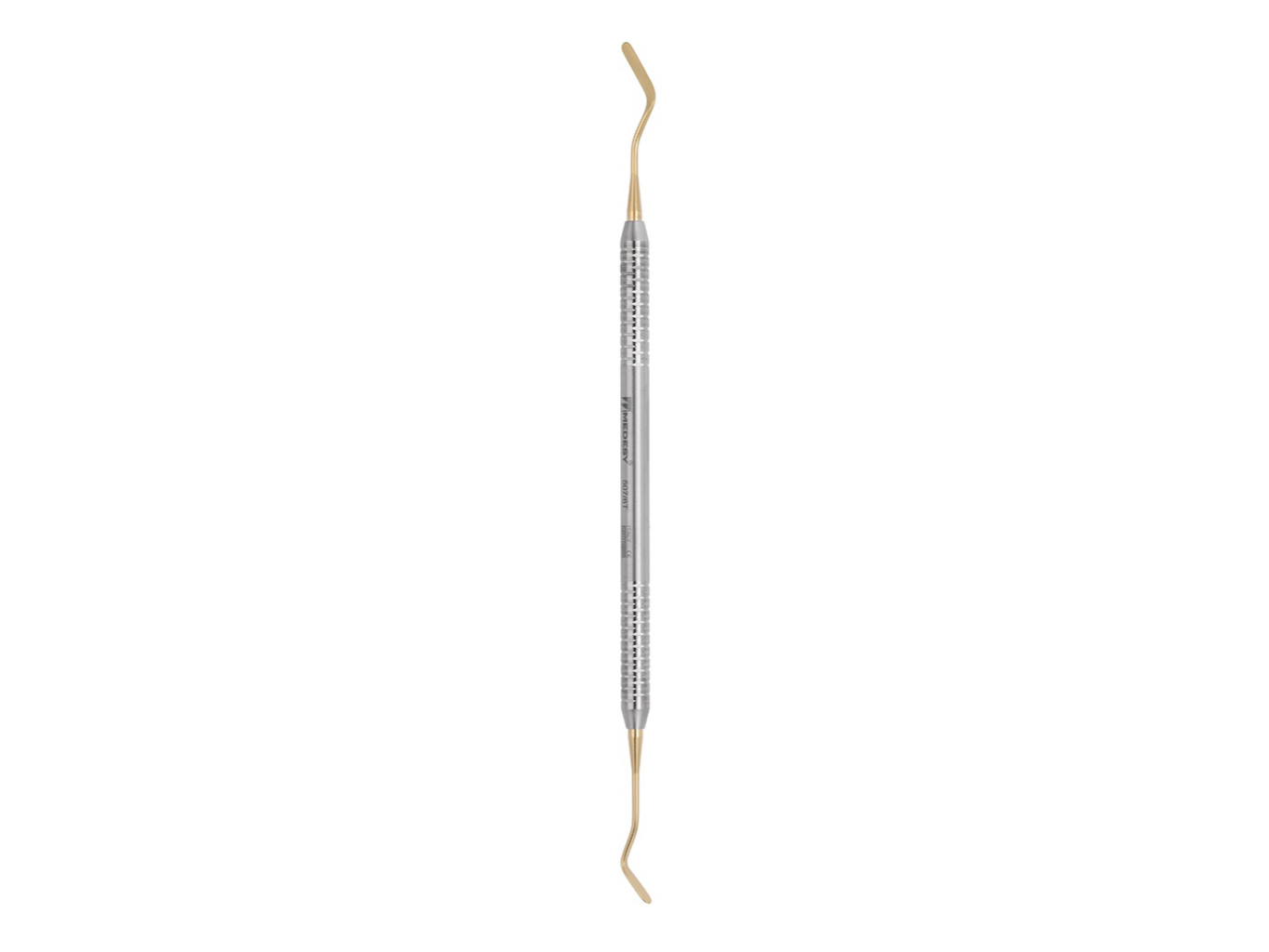 La espátula de composite MEDESY 499 está fabricada en titanio, material que le otorga propiedades antiadherentes, evitando que la resina se adhiera durante el modelado y facilitando la manipulación clínica.