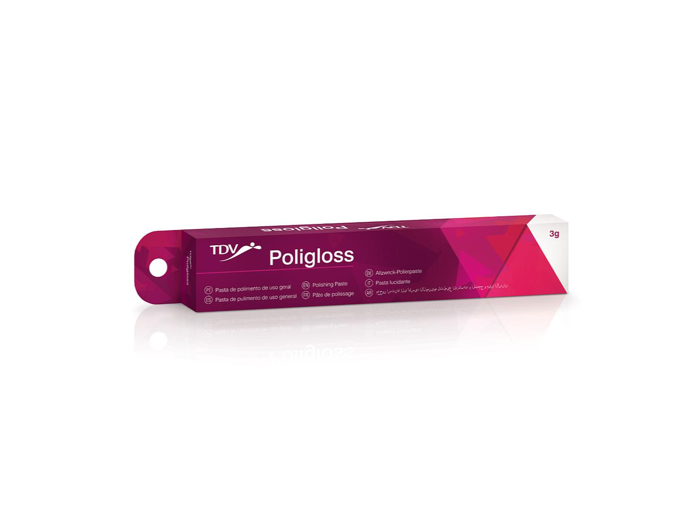 Poligloss es una pasta abrasiva a base de óxido de aluminio, diseñada para el acabado y pulido de restauraciones, elementos dentales y protésicos en clínicas y laboratorios dentales. Su formulación asegura un excelente brillo y facilidad de uso.