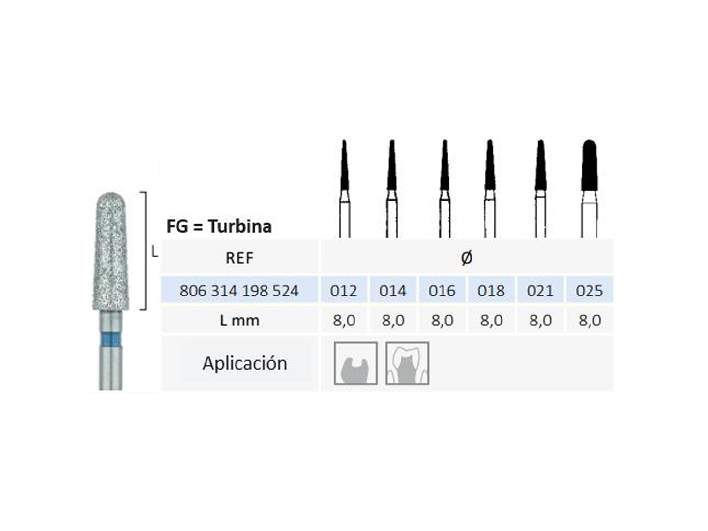 • Apta para turbinas (vástago FG): rendimiento confiable en uso clínico.