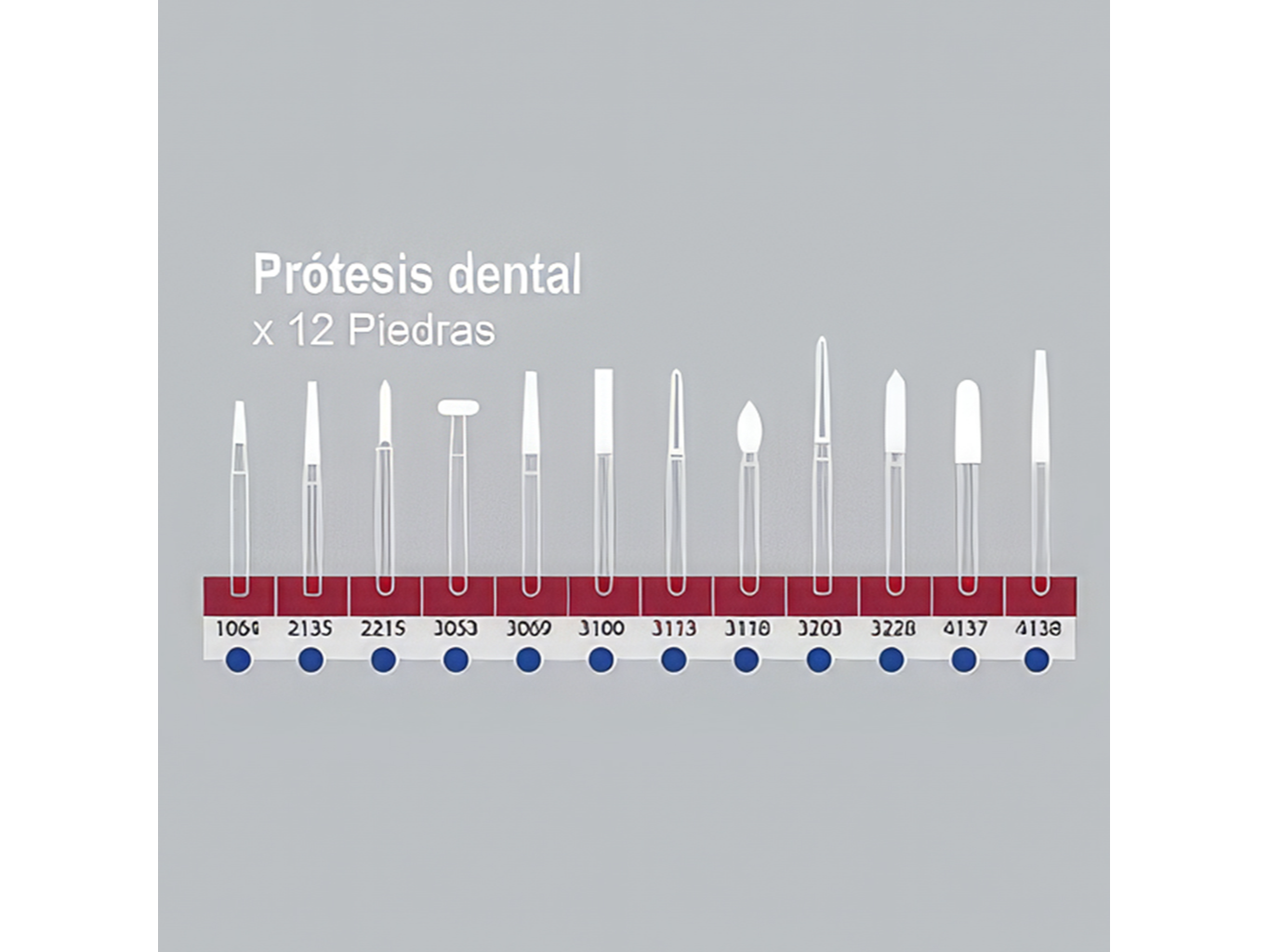 Kit profesional de piedras diamantadas Microdont, presentado en un fresero metálico de alta resistencia. Diseñado para laboratorios y consultorios que realizan trabajos protésicos, proporcionando una selección completa de formas y granulometrías para corte, ajuste, acabado y refinamiento de estructuras protésicas.