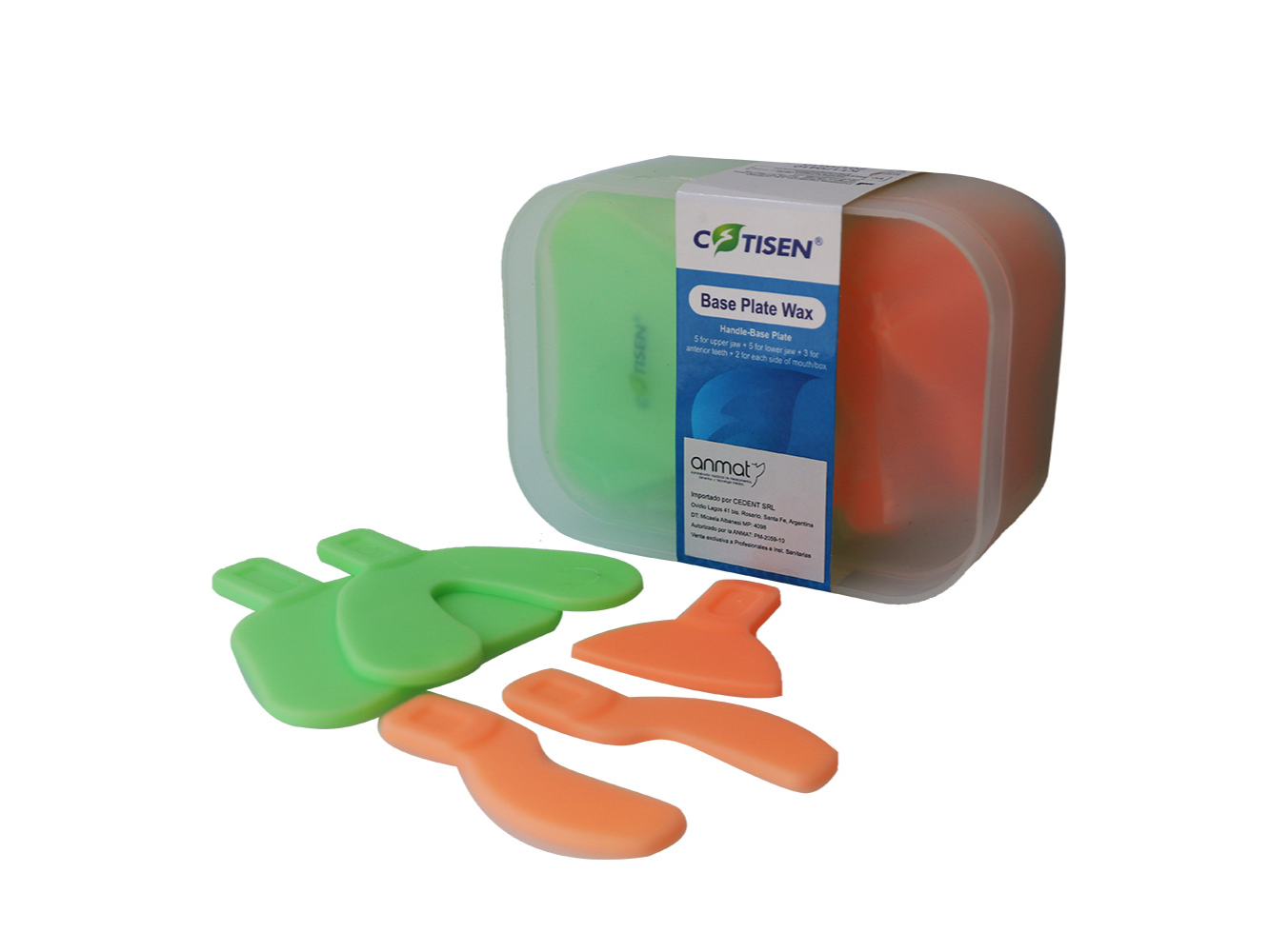 Cera Plástica para Cubeta Individual con Mango - Termo Moldeable. COTISEN Modelos: superior - inferior - parcial derecha - parcial izquierda - anterior Ceras plásticas utilizadas como un medio auxiliar para la fabricación de prótesis. La placa base sin mango se usa para que los dentistas y los mecánicos dentales puedan moldear la garganta y acomodar los dientes. Se ablandan al sumergirlas en agua caliente, alcanzando una gran plasticidad que permiten manipularse sin romperse y luego al enfriarse recobran la dureza original. Características: • Alta plasticidad • Alta dureza a temperatura ambiente • Se pueden recalentar y modificar hasta 20 veces sin perder ninguna propiedad • Grosor homogéneo • Inoloro • Fácil manipulación Instrucciones de uso: • Confirme que el producto esté limpio antes de usar • Déjelo en agua caliente (dentro del rango de 60-80 °C) durante 20 segundos aproximadamente, hasta que se ablande totalmente. La caja del producto está pensada para utilizarla como recipiente donde colocar el agua caliente • Saque la pieza y colóquela sobre el modelo de yeso para darle la forma deseada. *Puede usar más de una pieza al mismo tiempo, duplicando el espesor, ya que luego de ser ablandadas por el agua caliente, se pueden unir. Incluso se pueden cortar pedazos más pequeños si es necesario • Deje enfriar a temperatura ambiente o en agua fría si quiere acelerar el proceso, en solo pocos segundos la pieza volverá a tener la rigidez inicial con la forma perfectamente conformada • En caso de que el registro obtenido no sea el deseado, vuelva a repetir los pasos 2, 3 y 4, hasta obtenerlo. Este proceso se puede repetir hasta 20 veces sin perder las propiedades del producto Presentación: Unidad. Consultar caja con todos los modelos Marca: Cotisen Origen: China