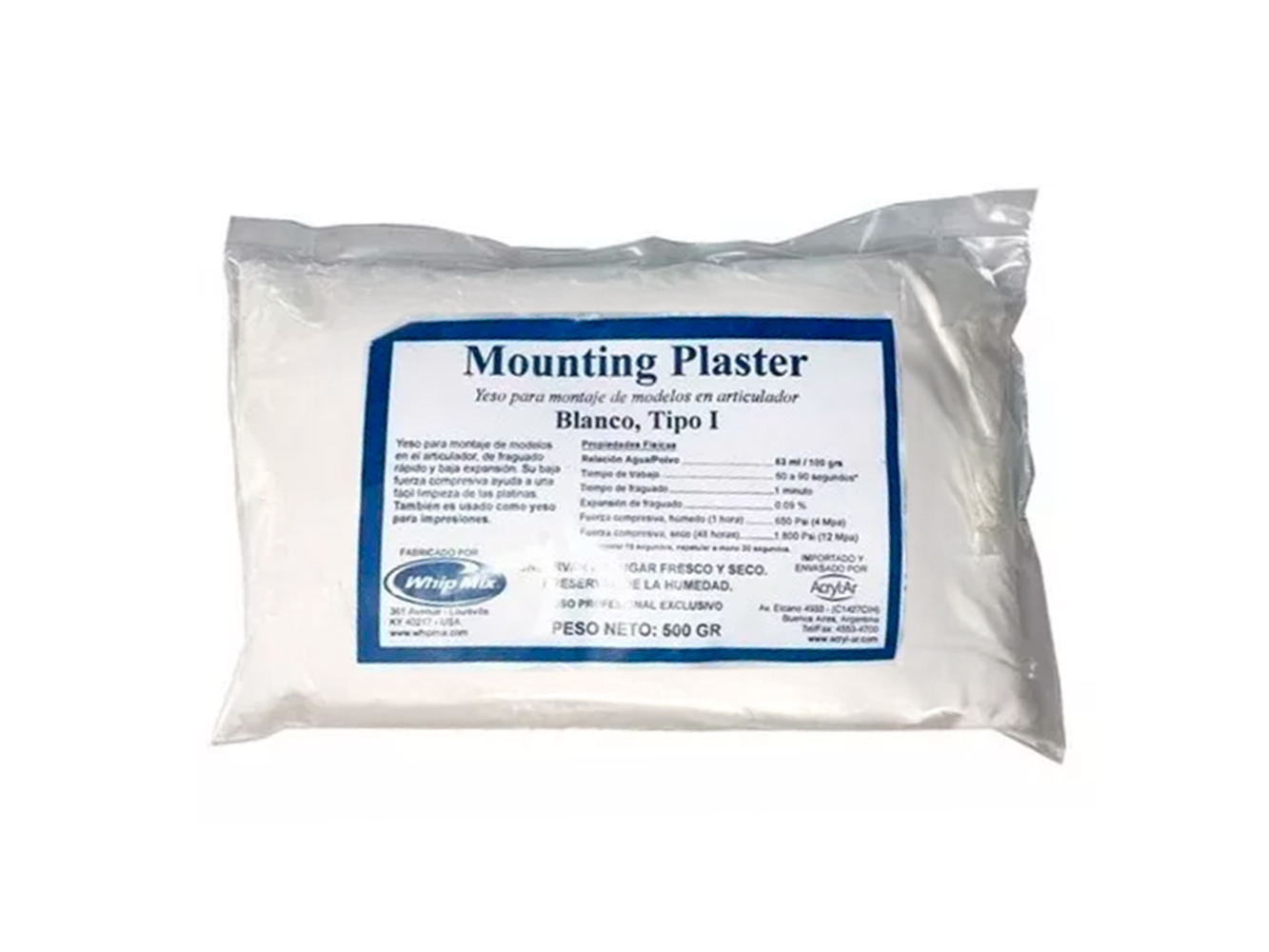 Yeso Mounting Plaster Blanco Tipo I 500gr. Para Montaje De Modelos En Articulador. WHIP MIX