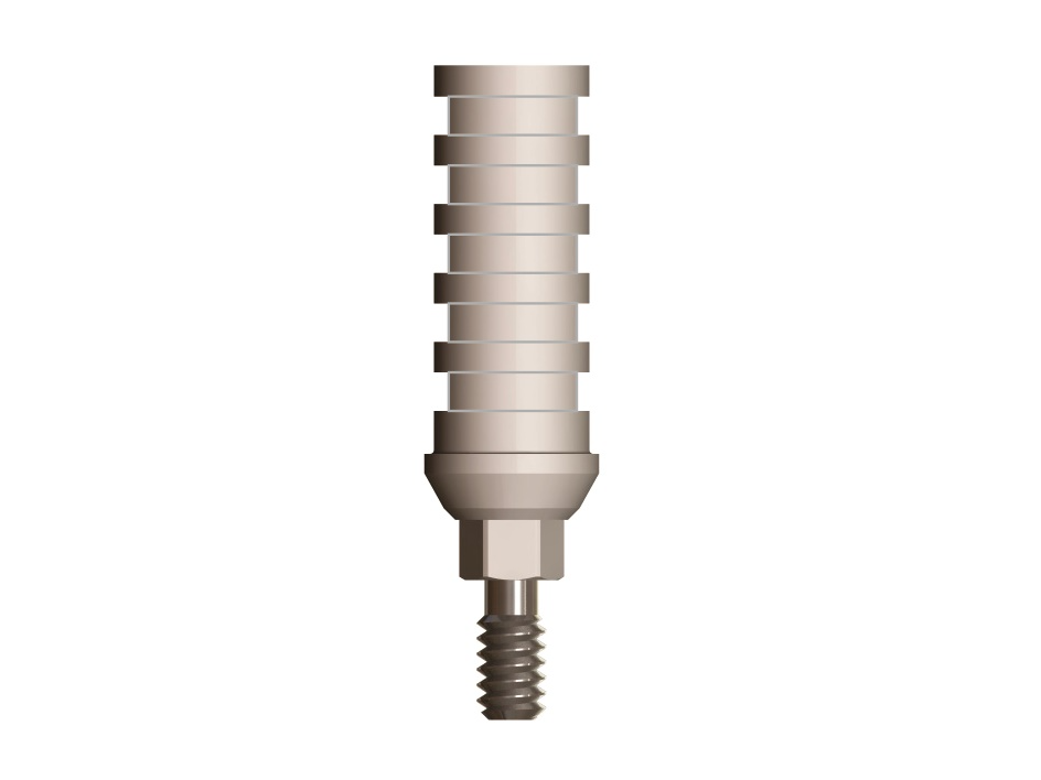 Componente calcinable con ranura diseñado para el sistema SHi, utilizado en la confección de estructuras protésicas personalizadas. Permite un ajuste preciso sobre el implante, facilitando la elaboración de restauraciones de alta exactitud y estabilidad.