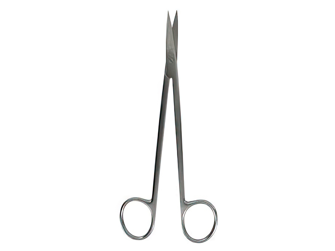 Tijera quirúrgica de uso general, diseñada para corte de tejidos y materiales durante procedimientos médicos y odontológicos.