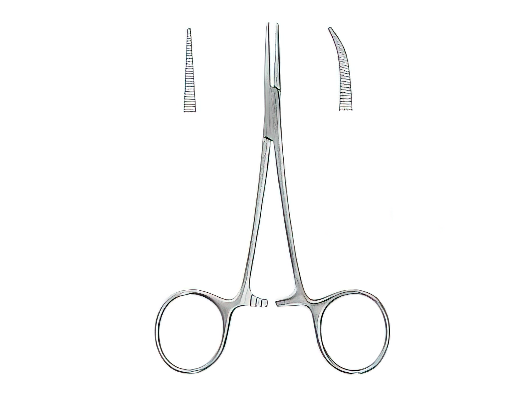 Pinza quirúrgica de acero inoxidable utilizada para sujetar, comprimir o bloquear vasos sanguíneos pequeños y tejidos finos durante procedimientos médicos y odontológicos.