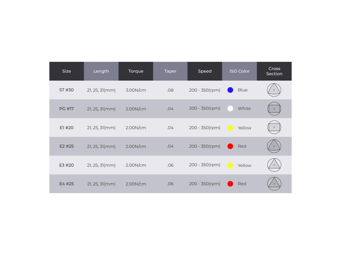 o E1 – E4: limas de preparación y acabado.