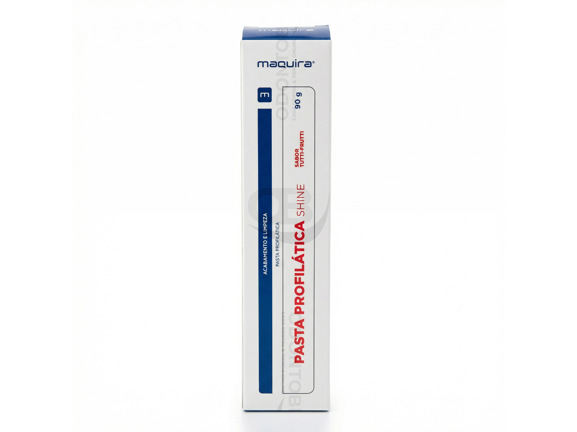 Pasta Profiláctica Shine x 90gr. MAQUIRA La Pasta Profiláctica Shine de Maquira está formulada para la limpieza y pulido de superficies dentarias durante procedimientos de profilaxis. Su abrasividad balanceada permite remover eficazmente residuos y manchas superficiales sin generar desgaste indebido en esmalte, dentina o cemento, dejando un acabado estético y de alto brillo. Además de su acción limpiadora, aporta una superficie visiblemente más pulida, mejorando el aspecto final del tejido duro luego de la higiene profesional. Características principales • Abrasividad controlada para limpieza eficiente sin abrasión excesiva. • Remoción de residuos y manchas superficiales en profilaxis. • Deja la superficie dentaria con alto brillo y mejor estética. • Textura adecuada para uso clínico con copa o cepillo profiláctico. Sabor • Tutti-Futti Presentación • Pote x 90 g Marca: MAQUIRA