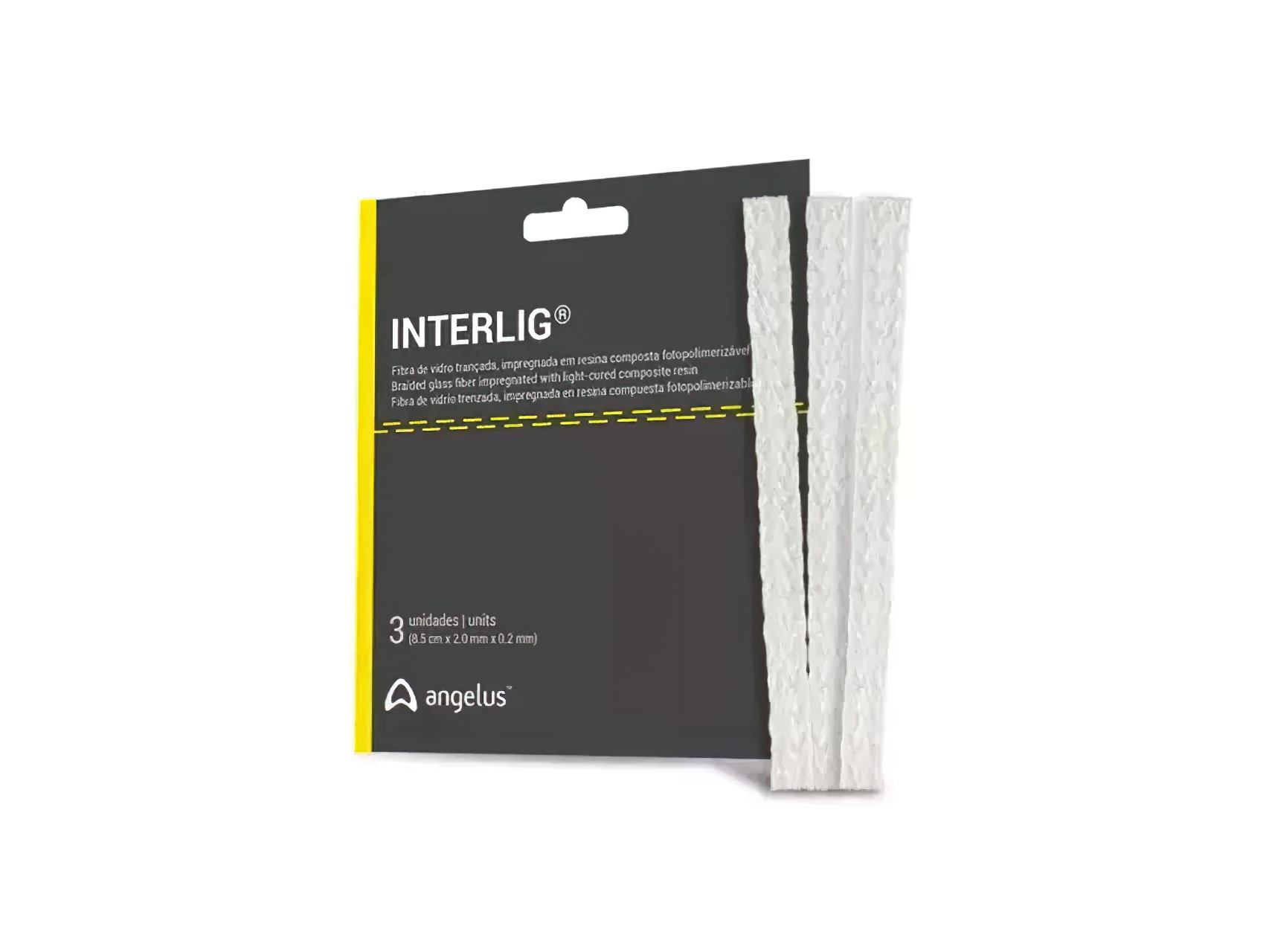 Interlig Fibra de Vidrio Trenzada Fotocurable x 3 Tiras (8,5 cm). ANGELUS